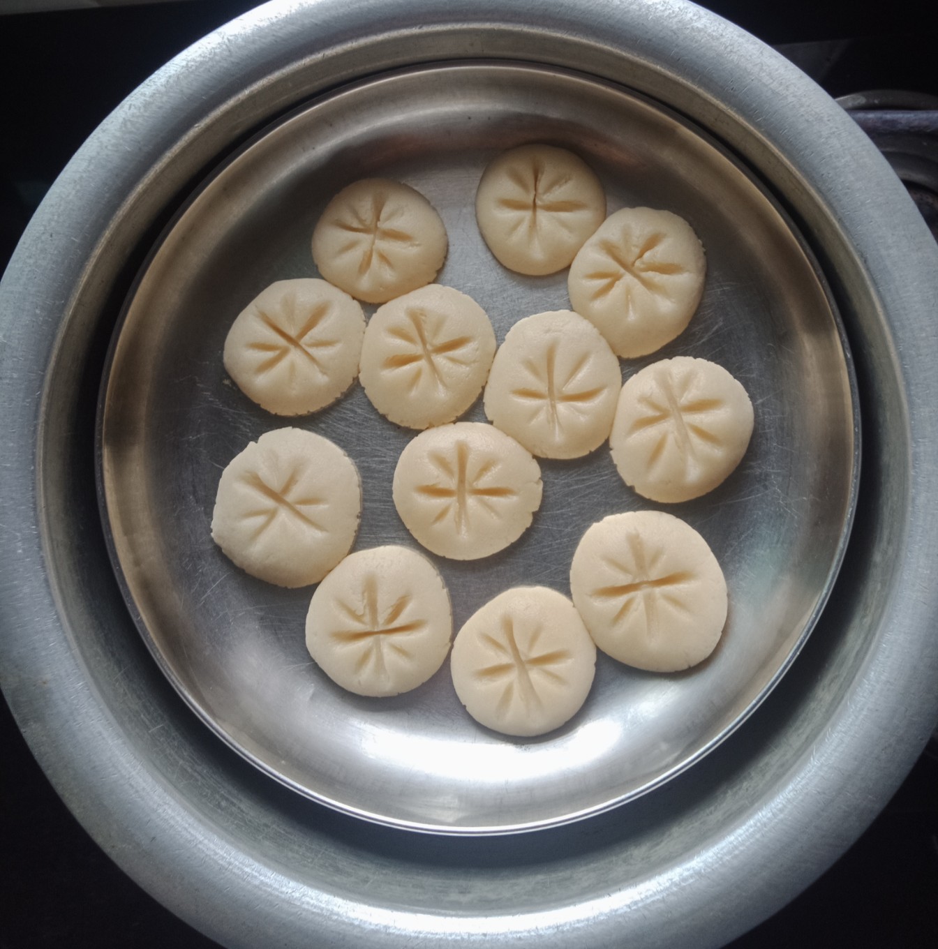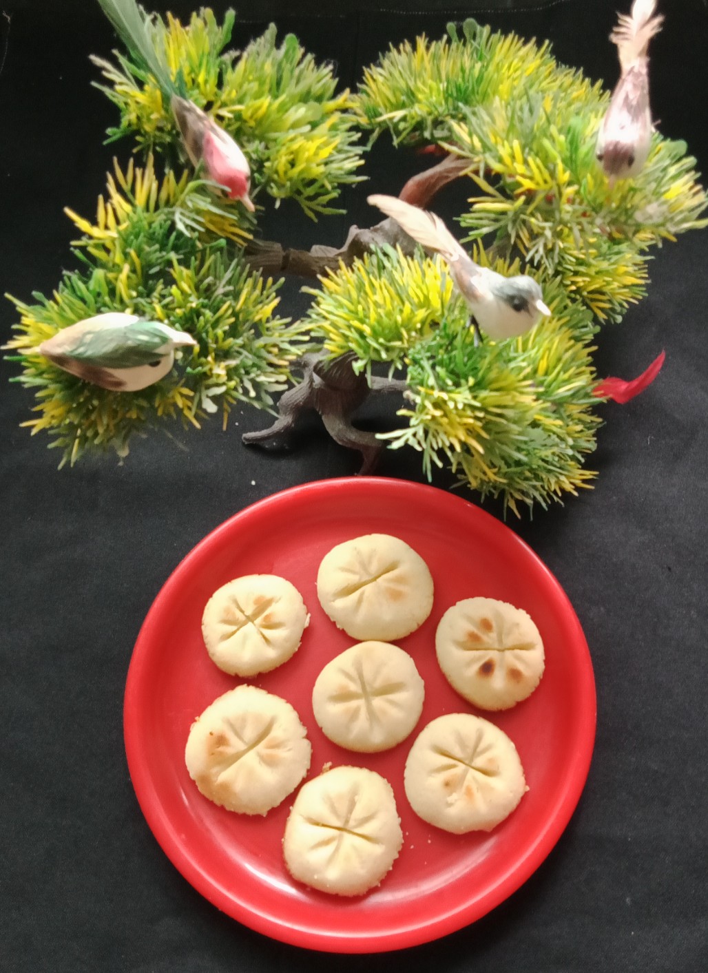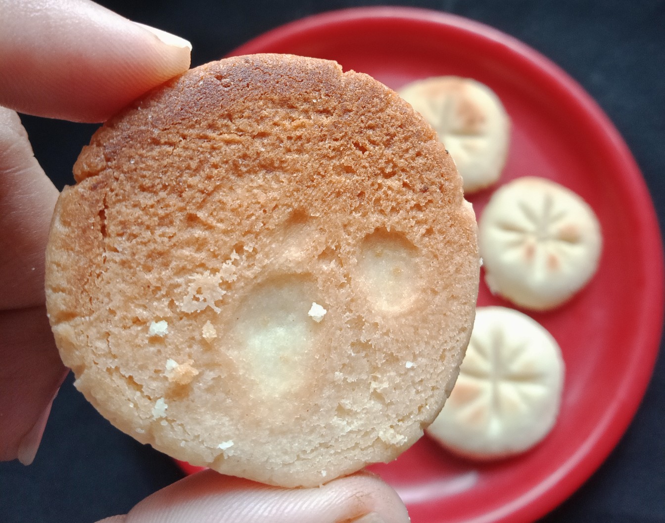 Take a deep bowl first Mix butter & sugar mix very well then in a beater or hand beater mix it nicely till creamy texture. Now add maida, baking powder & Vanilla essence. Then mix the butter and Mix all the ingredients well. Knead to a soft dough 👉without adding water 💧 Make round patties make it design from gently with ✋hand whisker front side press it came out beautifull💢💠💥 design 👉 you can use a fork to make vertical and horizontal designs on the cookies .place it in a plate give gap each cookies when it bakes it’s floppy & spread so. and keep it in 💁Pre heat the aluminum vessel put a ring on it.For 10 mins before I baked it in big aluminium vessel or Pressure cooker👉without water n weight..👈 for 15 mins to 20 mins on slow flame…or until they turn slightly golden-brown. These cookies melt in your mouth…Home Made cookies 🍪 Kids love these cookies 💞😋👌