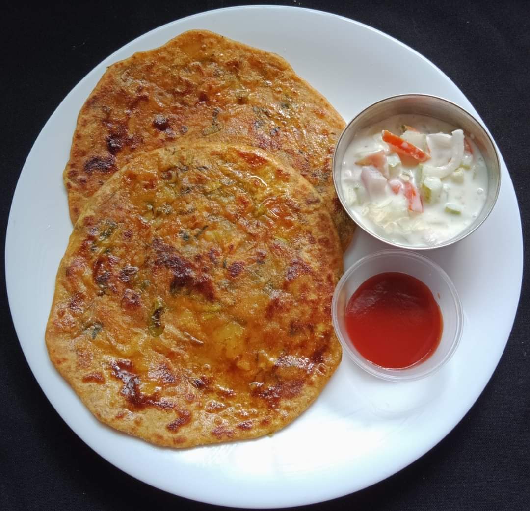 Methi Aloo Stuffed Paratha Serve Curd / Along With Any Raita Of Your Choice & Tomato sauce π