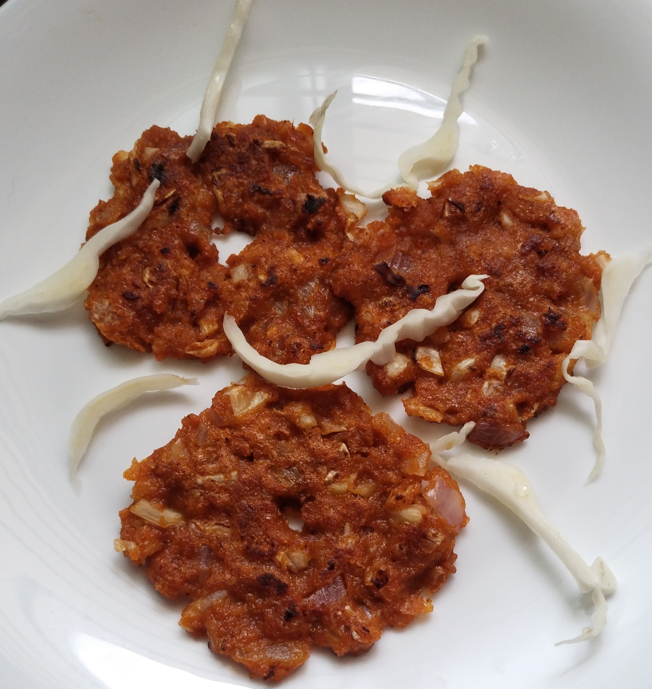 Konkani Style Cabbage & Onion Sanna Polo/ Spicy Mini Dosa & Spicy Idli With Rice . As a Side Dish