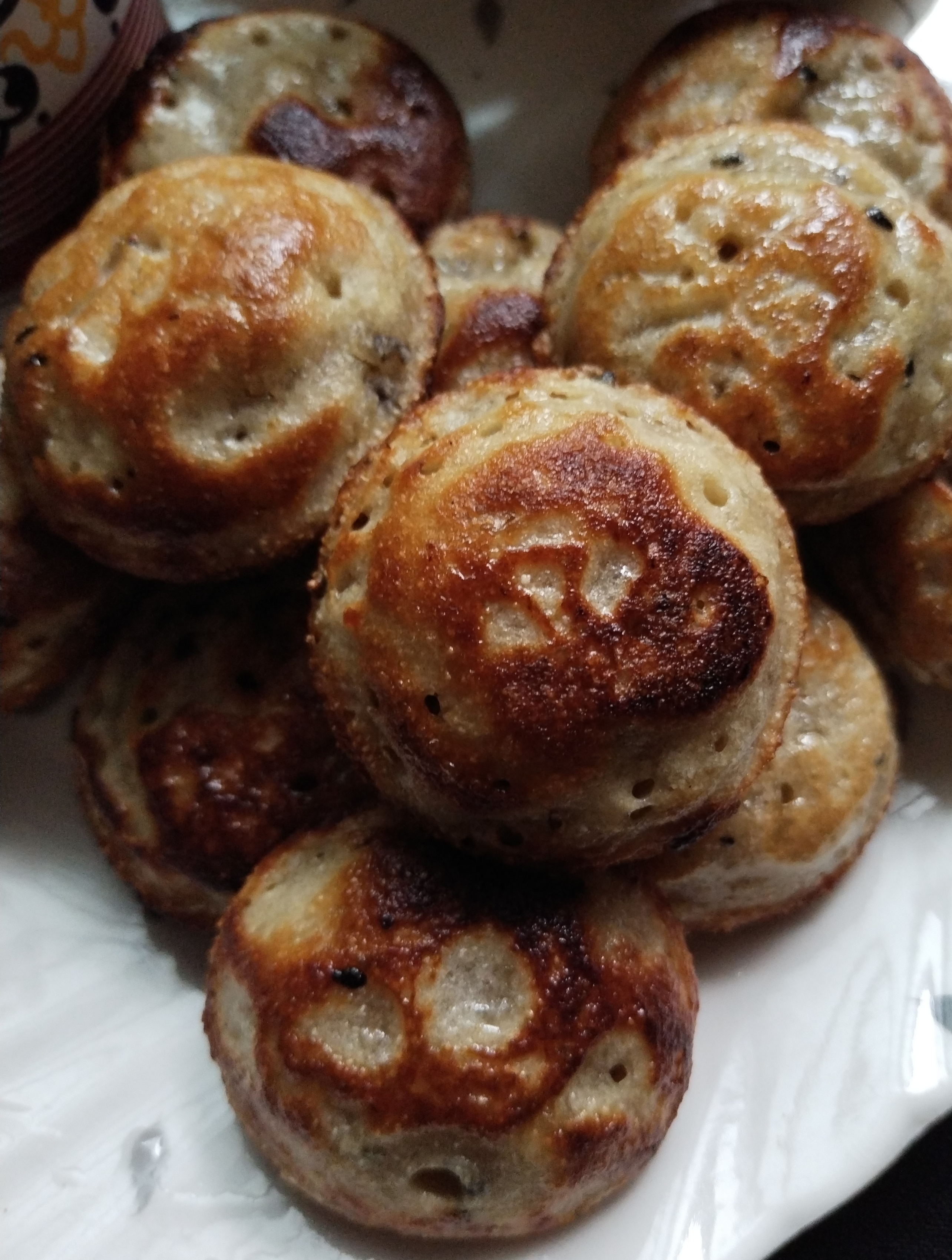 Now keep the appo Pan for heat and pour ghee in each mould .When the Pan is hot, Pour the batter in each mould. Cover & cook on low flame till it browns well before u turn.Keep the flame low always,๐ since it has jaggery, if you keep flame high heat ๐ burn ur sweet Appo from outside while the inside will remain ๐raw.Then flip Appos other side and again cook for 1 or 2 minutes till done. Aromatic Sweet Wheat ๐พBanana ๐ Appos are ready.. ๐ค๐