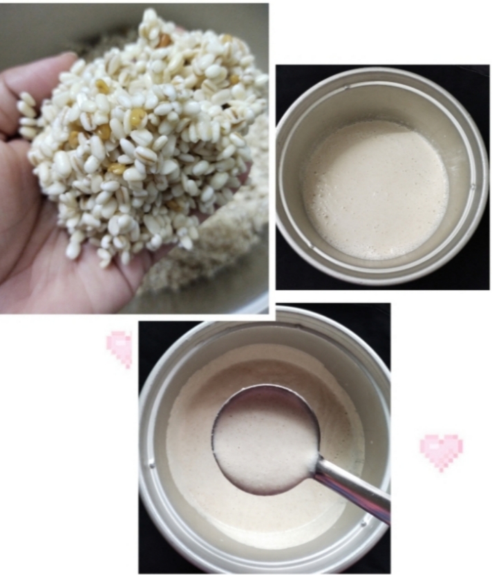 firstly, in a large bowl, soak barley , urad dal and methi seeds for atleast 4 hours.drain the water from soaked urad dal & Barley blend to smooth and fluffy batter. adding water required.