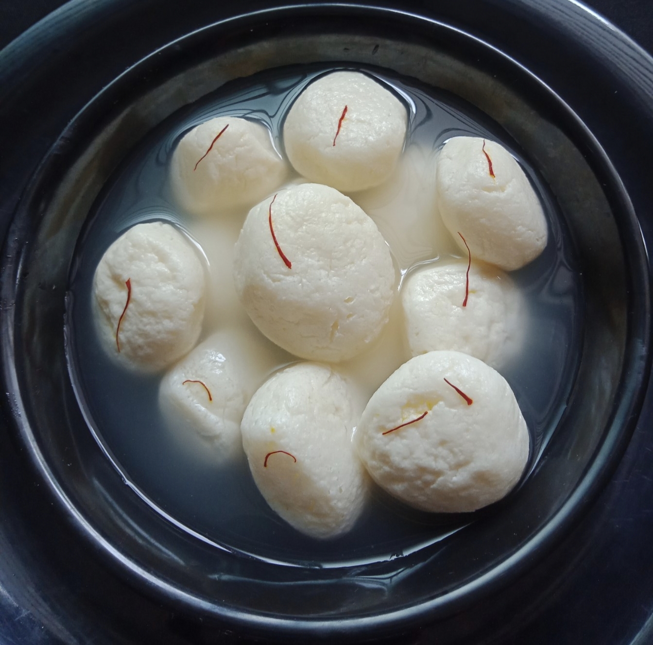 cover and boil for 15 to 20 mins⌚ the balls will have doubled in size.keep aside…till it cools completely and then refrigerate.finally, Ready to Serve Rasgulla Chilled or at Room Temperature Garnished With Saffron Strands.