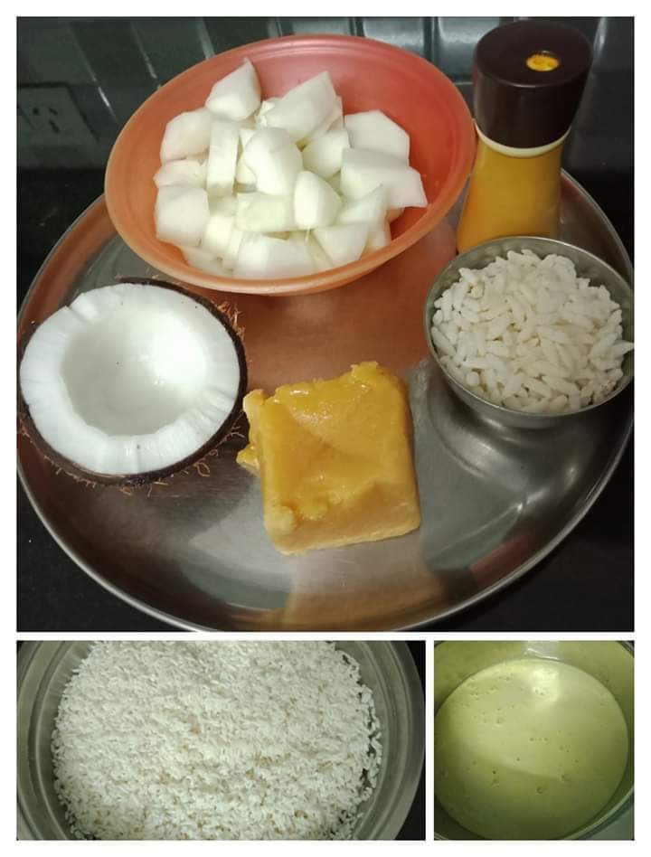 First grind coconut & cucumber pieces,turmeric than add soaked rice & bhel as per u r sweet add jaggery💁Dosa consistency add little salt, here I using mildly sweet….you can adjust less or more Mix well & ferment.. It overnight.. fermentation is must needed to 8 -10 hours.💁 otherwise dosa turn to hard texture. Next day morning mix it nicely ready to make it Dosa.