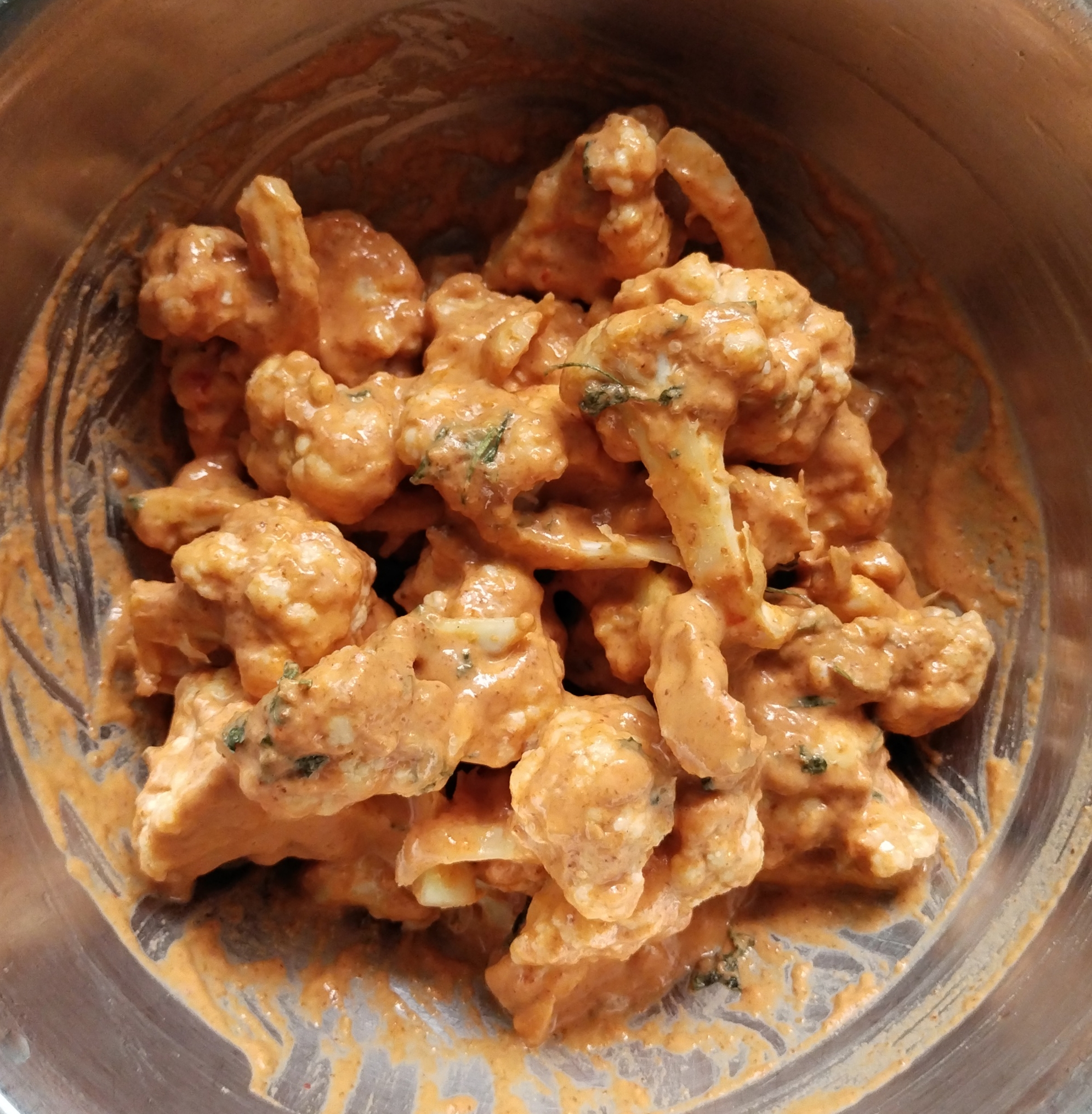 Take a big mixing bowl, add maida & rice flour.. red chilli powder, chat masala, garam masala, ginger garlic paste,Crushed Kasuri methi few chopped curry leaves, salt to taste & mix it well with cup of water ๐ง thick & silk smooth paste. Now dip boiled gobi into a batter coating allover.