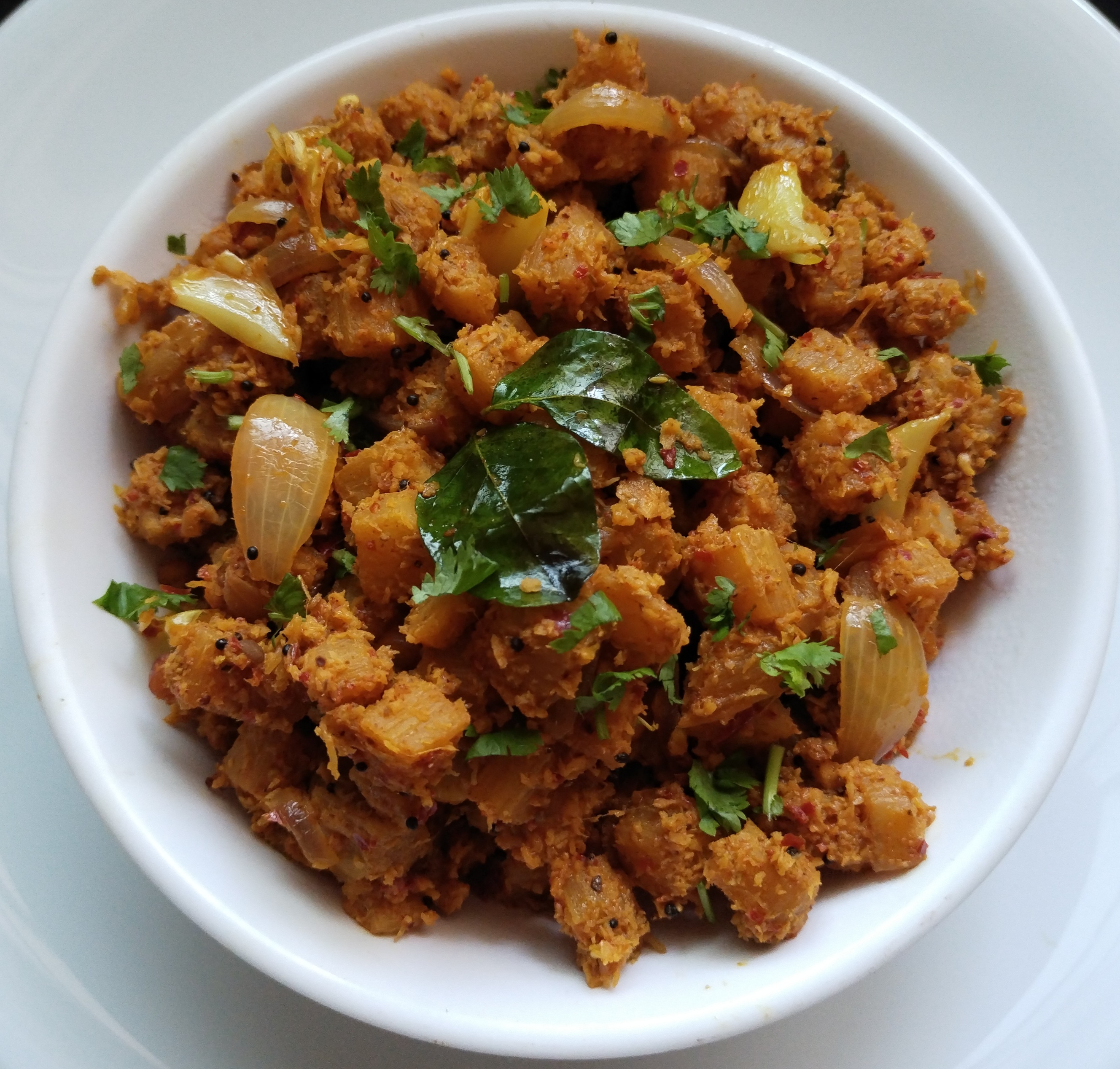 Heat a sauce pan with oil add mustard seeds and allow it to crackle. Add the curry leaves, without Peele crusted garlic 1 tbsp Chana dal and onions and saute until the onions soften.Once the onions soften, add cooked Banana Stem. If required add salt and adjust according to taste… add the ground Masala coarse paste …Stir well to combine and cover the pan and allow the stem to absorb all the spices by cooking it for 5mins. Once done, turn off the heat and serve Garnish with fresh coriander leaves the Banana Stem Stir Fry.. Along with Hot Rice or Neer Dosa & Chapathi as a Side Dish ..💞👌👍