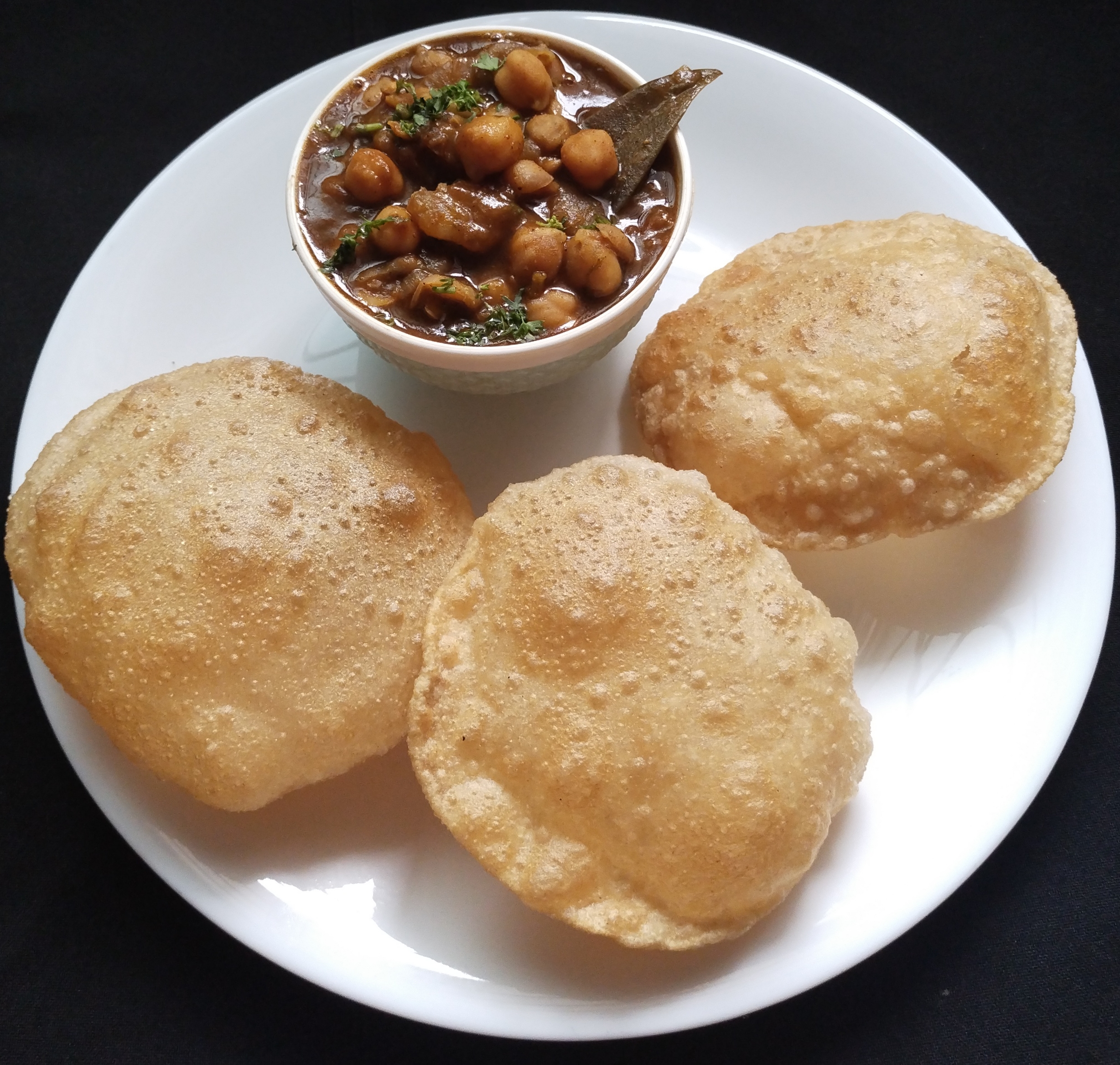 Take a plate and serve Hot Hot Chola & Puri With Lemon 🍋 Finally Chopped Raw Onions & Fresh Coriander Leaves….💞😋👌