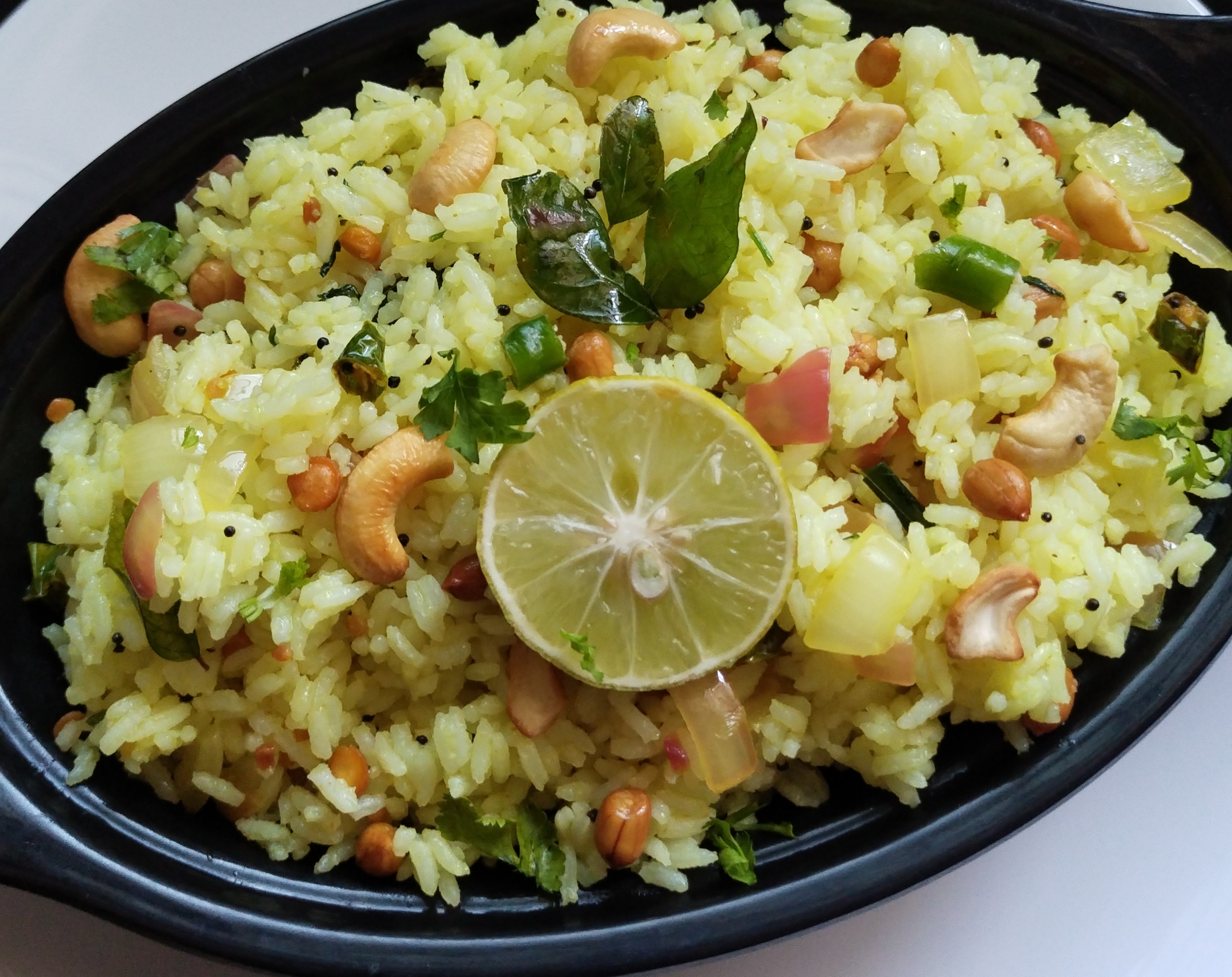 In the pan, add 3 tbsp oil Mustard Seeds and let them crackle.When the Mustard Seeds start to splutter, add peanuts and cashew nuts fry them for a few seconds. Add urad dal ,chana dal . Fry them till they turn golden brown. Add few Curry Leaves along with finely chopped Green Chillies & capsicum to the pan fry them nicely for few mins.Then add turmeric Powder . add chopped onions fry them for a few seconds.Remove from heat . Add 2 to 3 tbsp Lemon π Juice as per ur tasty .Add the cooked rice to the pan. Salt to taste & Chopped coriander leaves. Toss the rice gently to coat them in the tempering. and mix everything together. Turn off the heat and let the rice sit rest for 5 minutes. Ready to Serve Lemon πRice.. π
