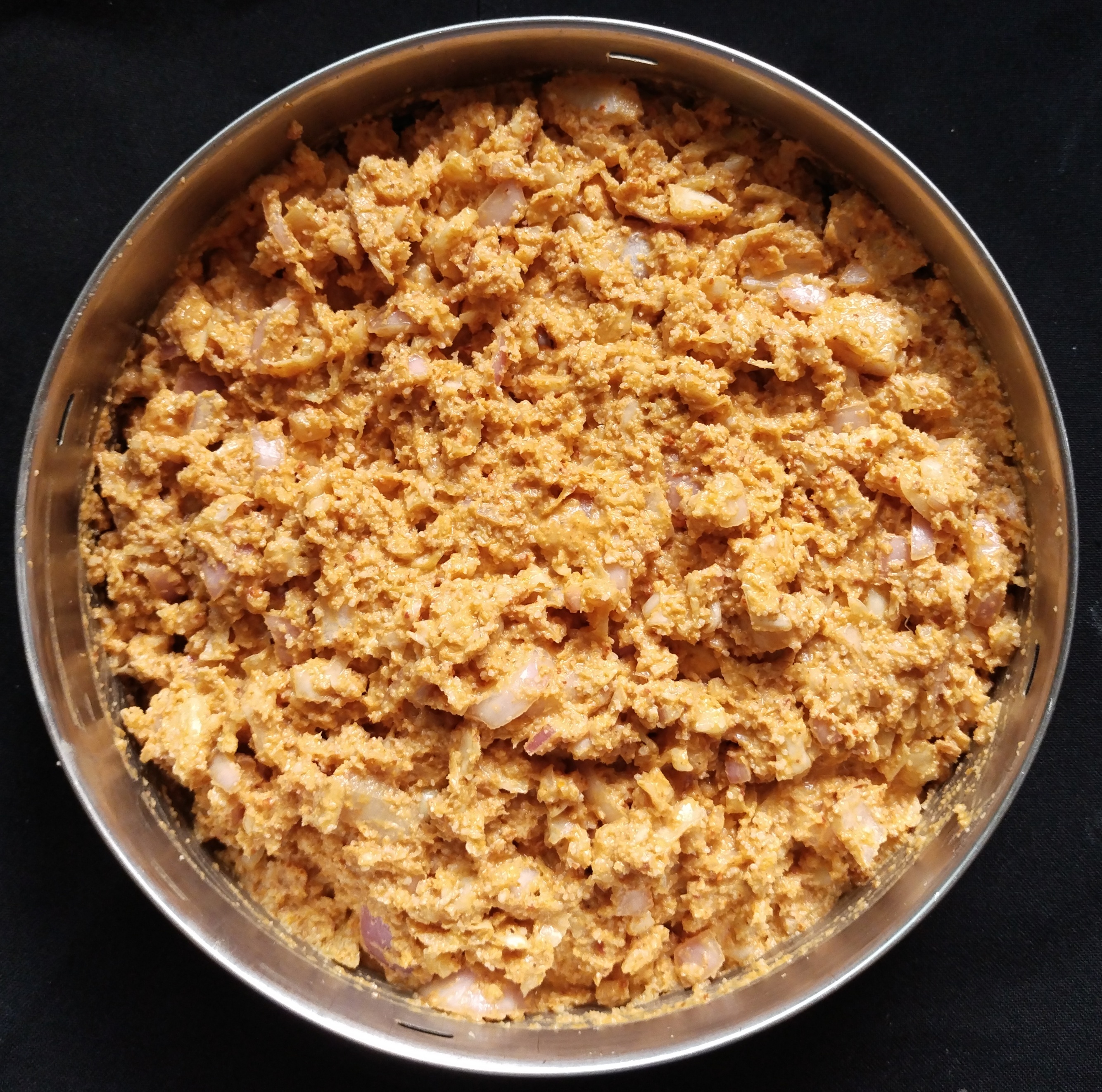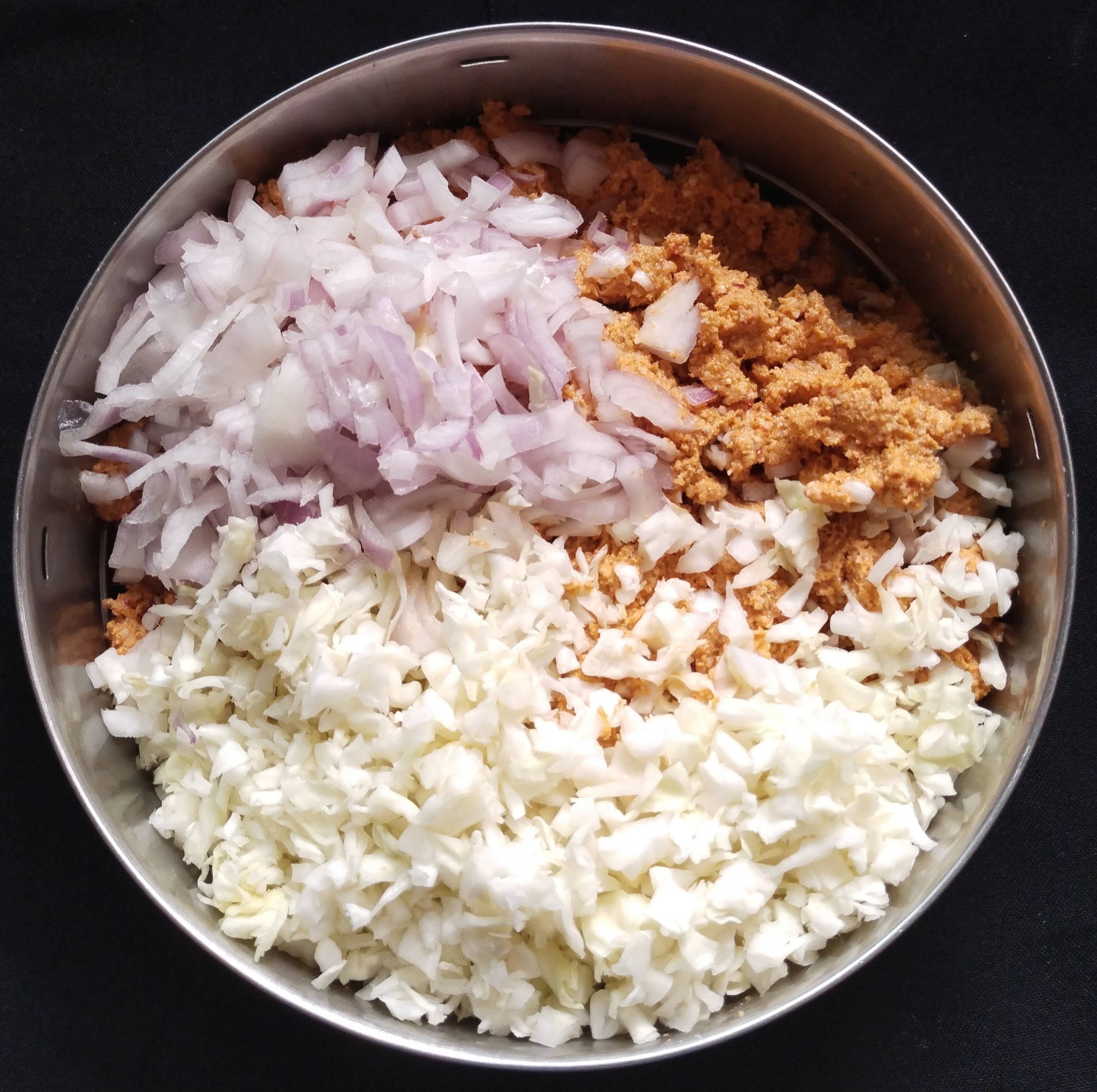 Add the finely chopped cabbage and onions to the batter and with salt mix nicely in ur ✋hand.