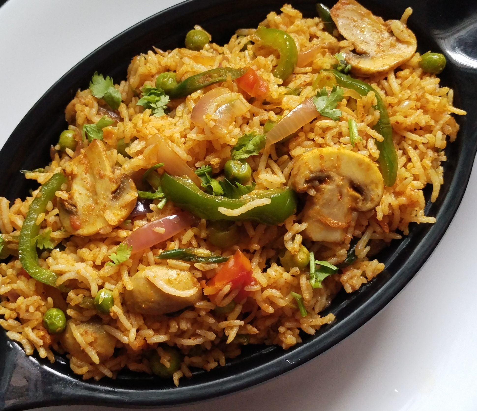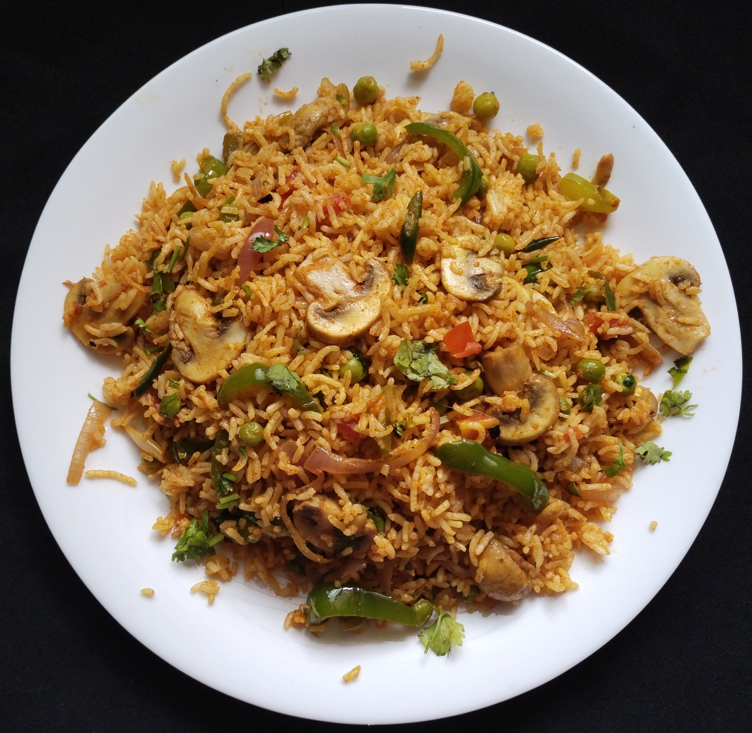 Is a very quick and delicious. This recipe uses lots of colorful veggies like mushrooms, tomato , beans, green peas & capsicum. ๐ค