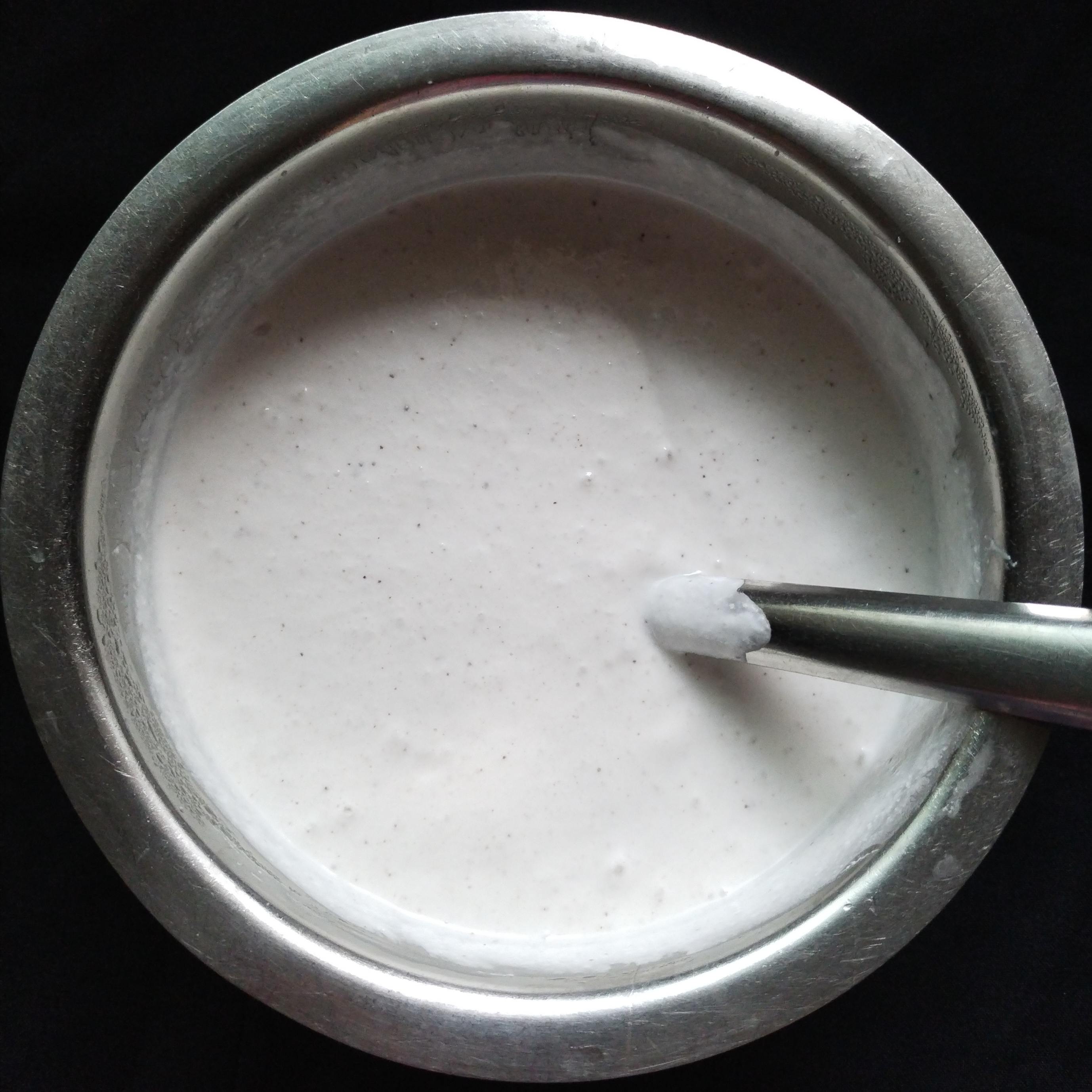 In a mixi jar grind rice & fresh grated coconut π₯₯ first to fine paste and add cooked rice make it smooth paste remove to a larger vessels. Add salt to taste & 1/2 tbsp sugar mix batter well with a help of spoon ,close and set aside for fermentation 7-8 hours β or over night.