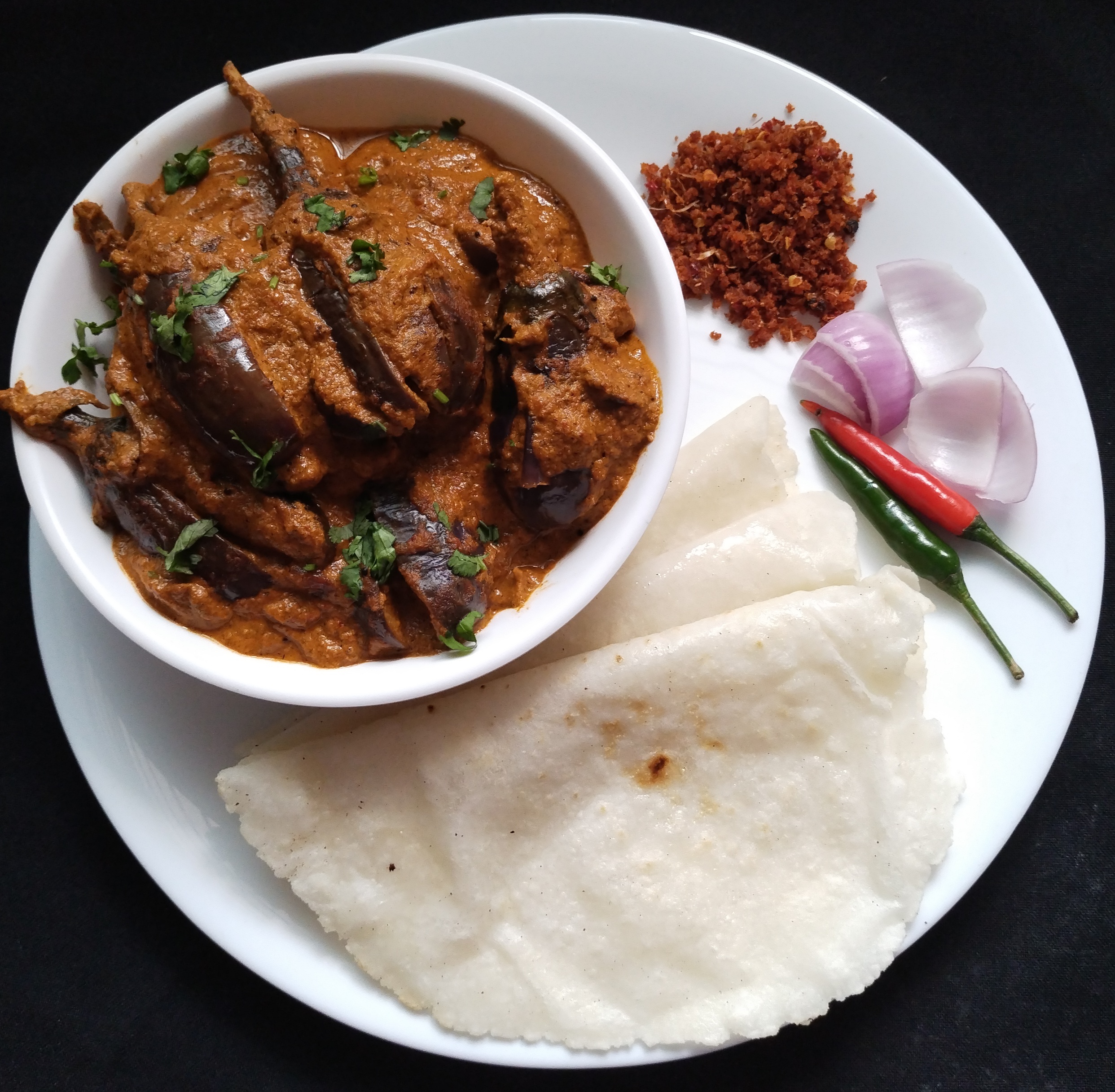 Ennegayi / Brinjal Curry With Akki Roti / Bhakri…💞😋👌Garlic / Lasoon Red Dry Chutney Power🧄🧄🧄