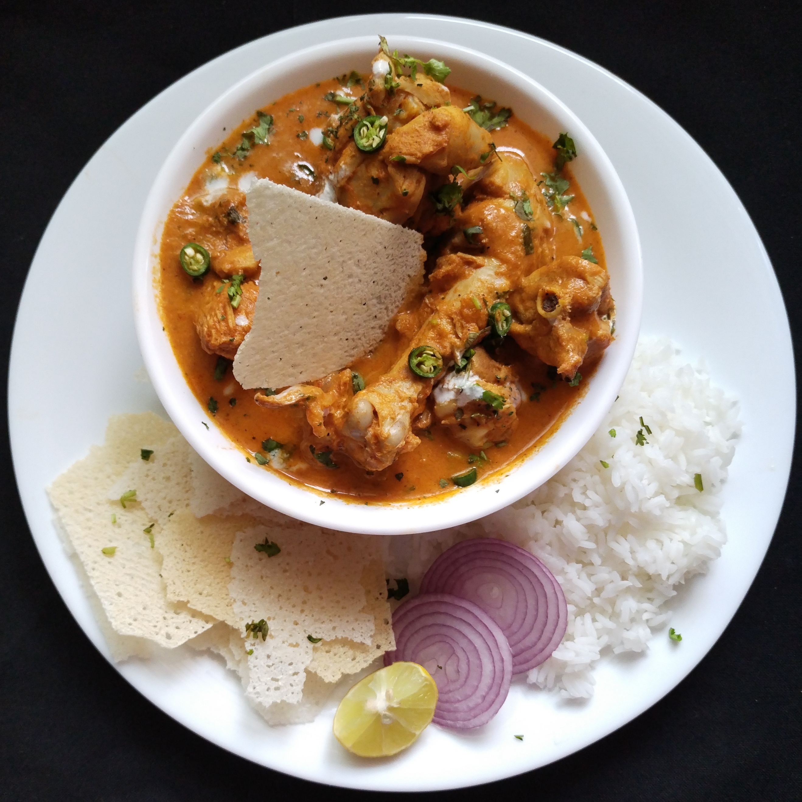 Chiken ๐ Changezi Restaurant Style. Its Traditionally Served With ๐ Rice / Kori Rotti or Neer Dosa.