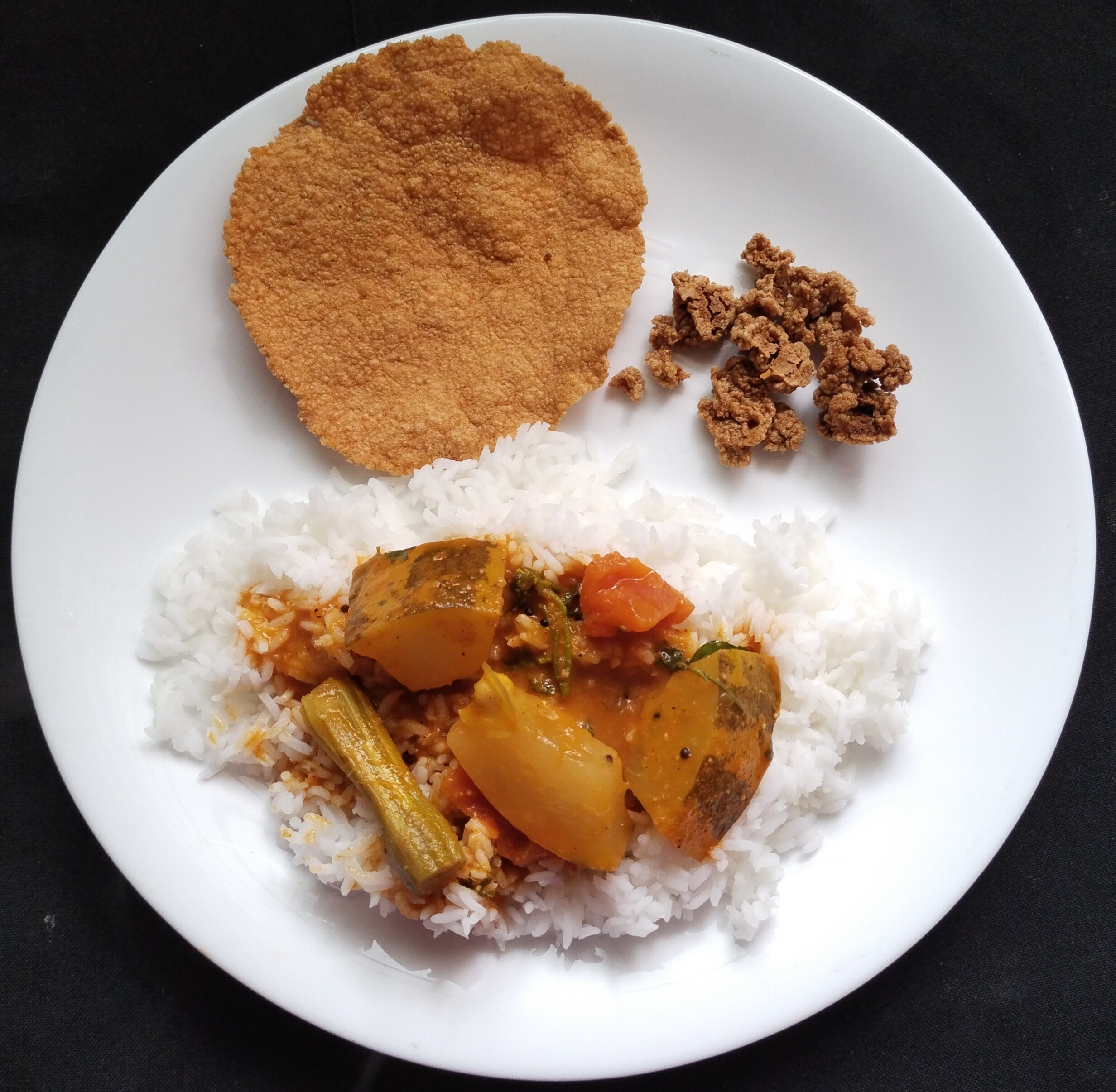 Udupi Shri Krishna Matha Style Mangalore Cucumber / Magge Sambar With Home Made Potato Papad & Vodi