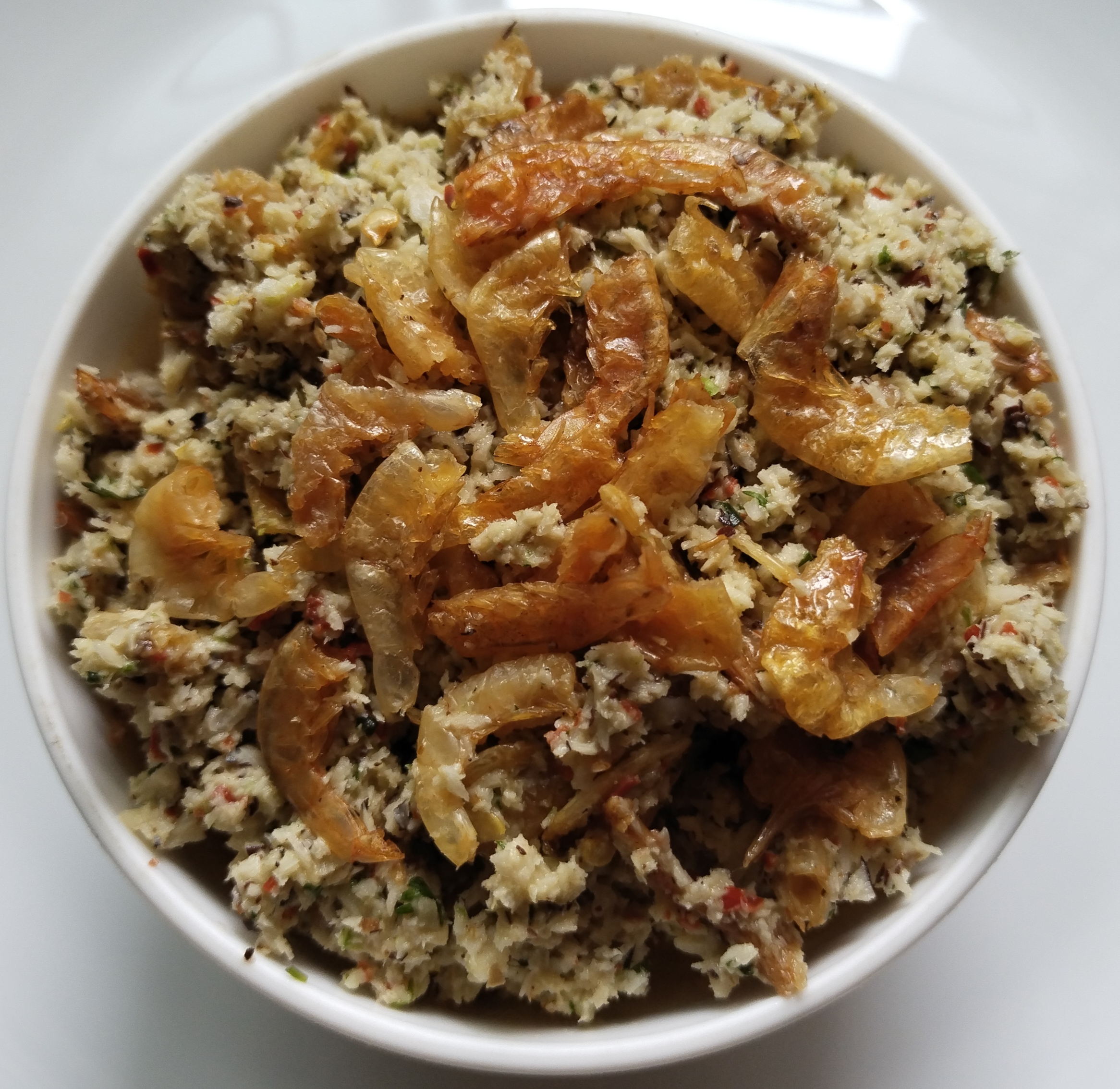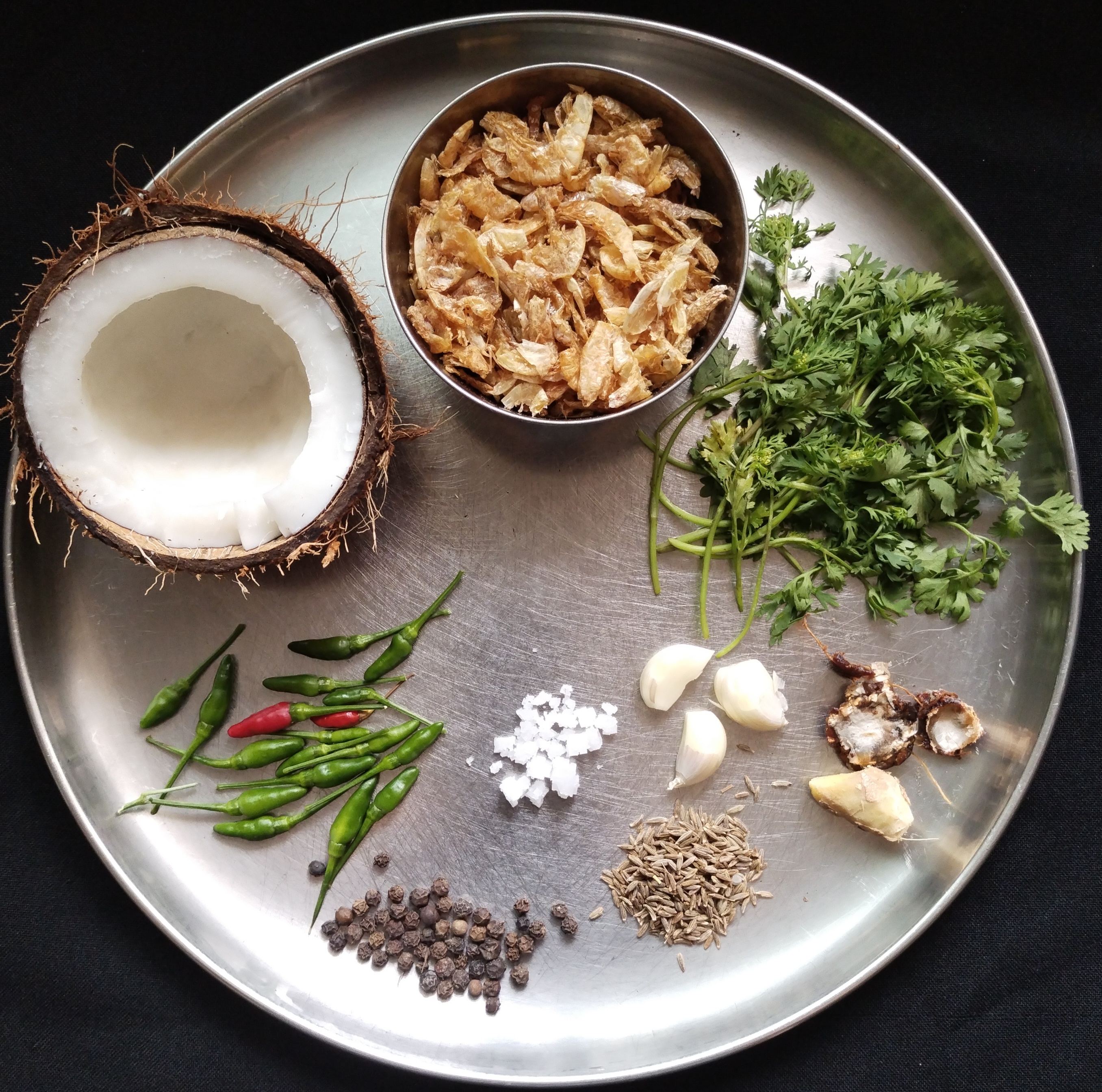 Dried Prawns is a common and much-loved ingredient in a seafood loving coastal town of Mangalore. The most popular way to eat it is to roast it and coarsely grind it along with coconut & spices and serve the chutney along with rice.
