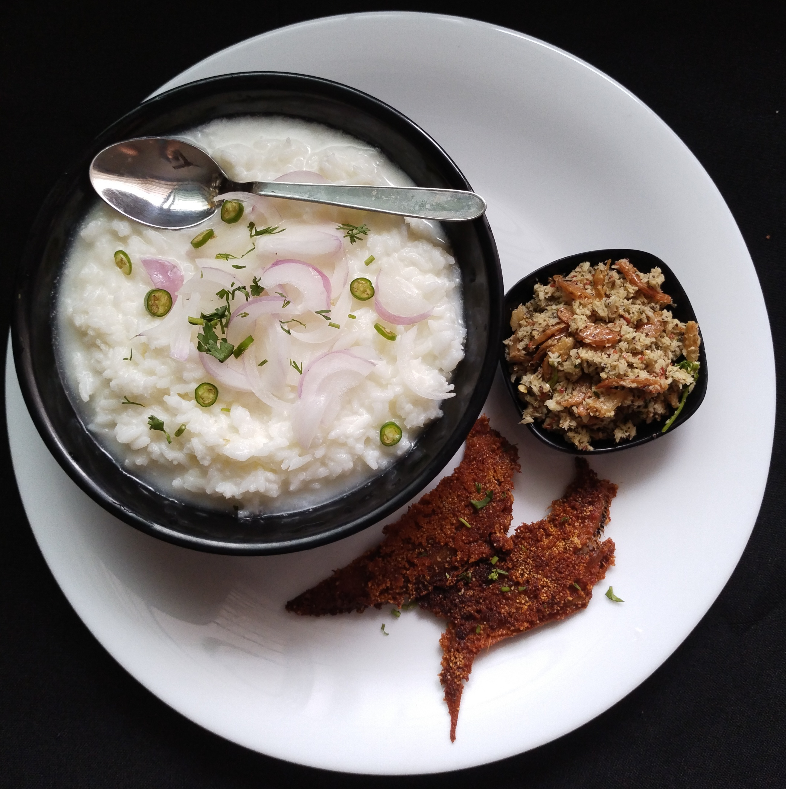 Today’s Simple Summer Lunch.Curd Rice / Mosaranna 🍚 With Dry Prawns Chutney & Spicy & Very Crispy Dry Nangu Fish Tava Fry / Sole Fish Fry