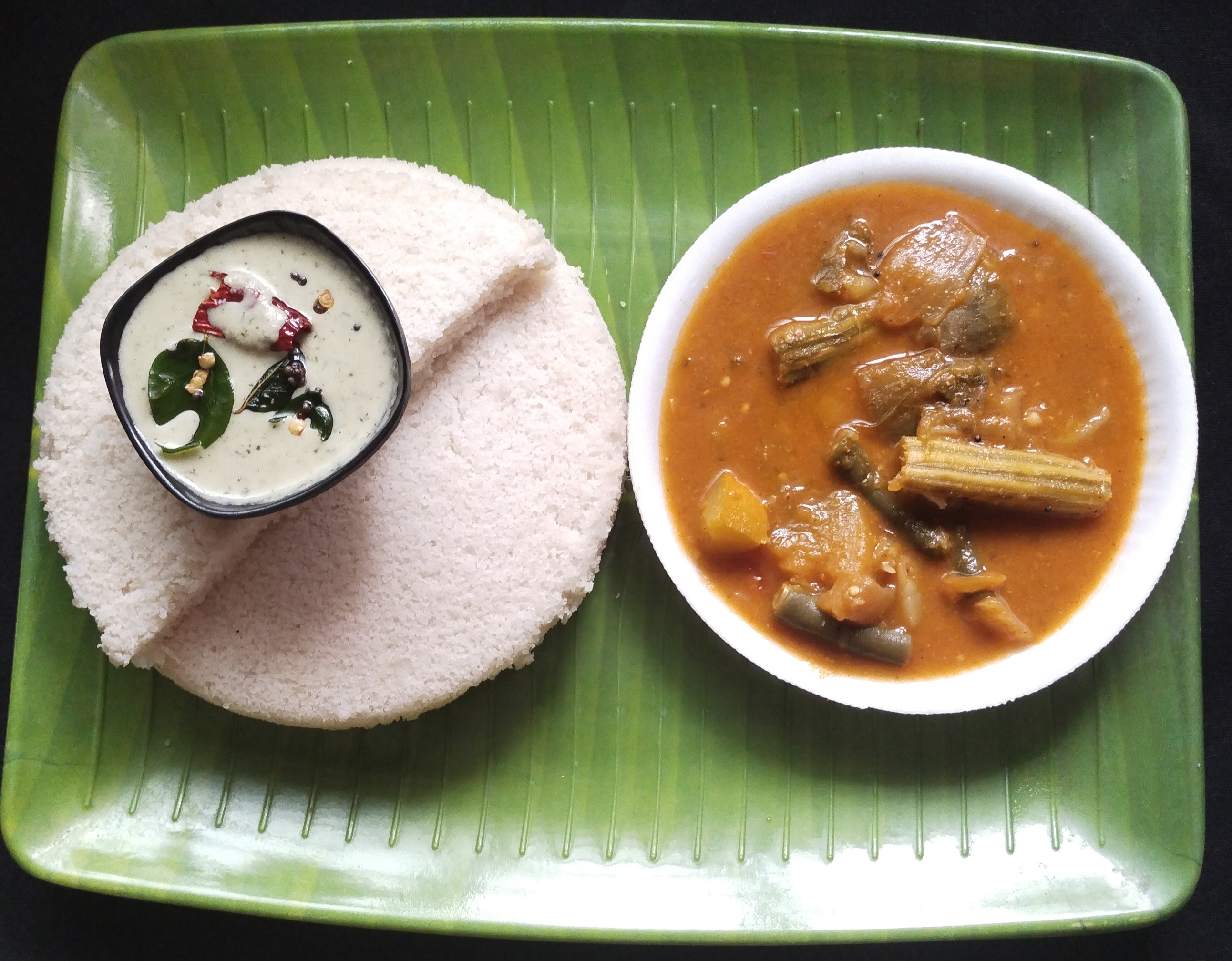 Ready to Serve Mallige Idlis With Spicy Coconut Chutney & Sambar.