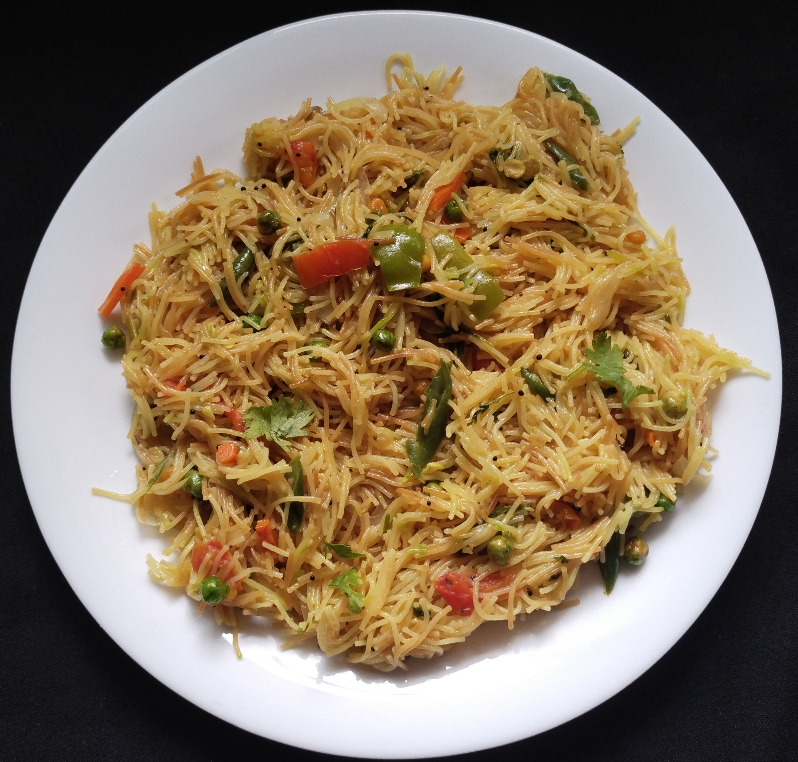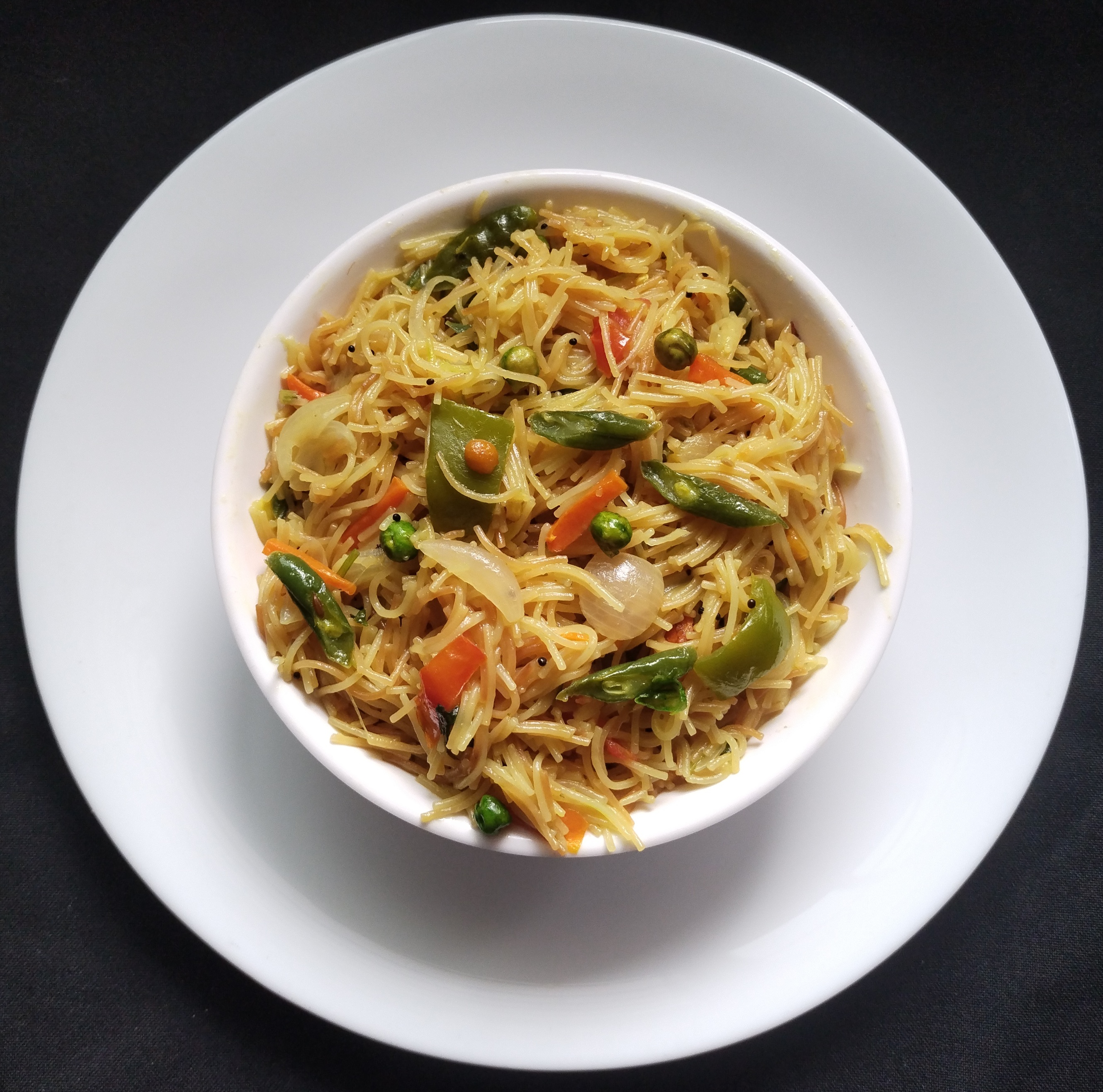Firstly, in a kadai heatĀ oil and splutter mustard,urad dal, chana dal, cumin seeds and few curry leaves now add green chilliĀ saute well further, addĀ onions , beans ,carrot š„š tomato, and saute slightly.saute for a minute.add turmeric andĀ salt to taste & sugar.Ā saute for a minute than addĀ water for 2 cup Vermicelli Semiya 4 cups of waterĀ .BringĀ it nice boilĀ than add fry Vermicelli Semiya and mix gently. do not over mix as semiya will šget mashed.