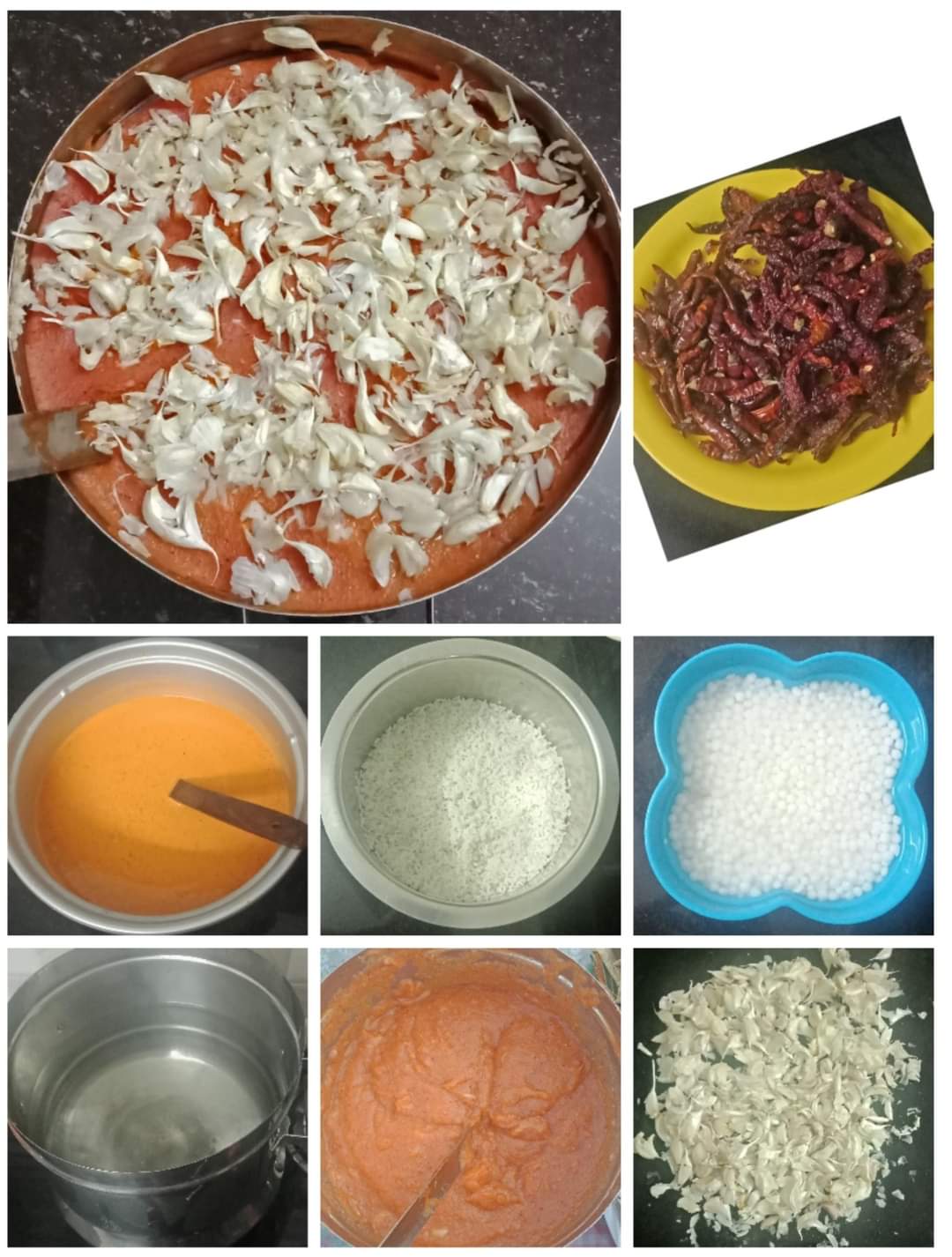 Here I m soak it in the afternoon and grind the batter in the Evening..grind this soaked Rice & Sabudana Along with red chillies as per ur taste in to a smooth paste.Add salt to taste. The 👉batter should be not to much watery 👈It should be dosa batter consistency.