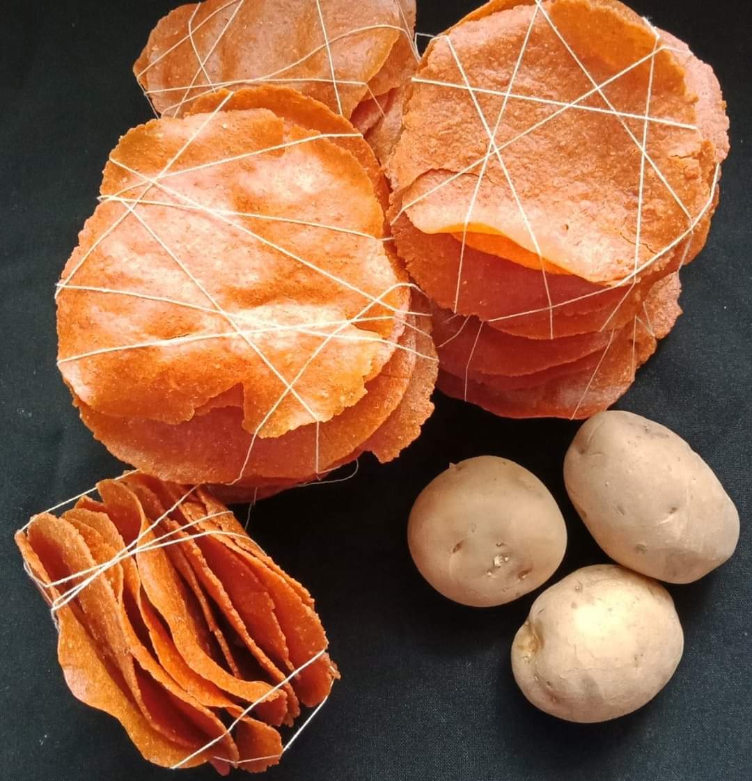 Let cool first before you stock them in an air tight container . Take the required quantity as & when needed and deep fry to enjoy this crisp crisp batate happolu 💁Deep fry Potato Papa’s /Batate Happolu ..As a Side Dish With Curd Rice /or Dal /Tea Time Snack…
