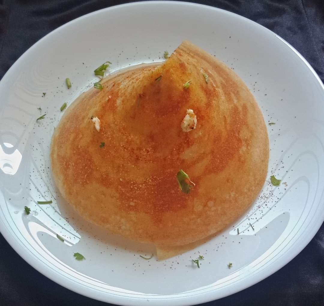 Heat griddle and pour a ladleful of the batter on it and spread it in a circular motion thin circle.also a little oil over it. then cover the dosa for a minute and.. Now spread spicy red chutney..keep the potato masala.. cook till the bottom of dosa turns golden brown.finally, flip other side fold ….over to make a semi-circle, cone or a roll & any shape and serve immediately .