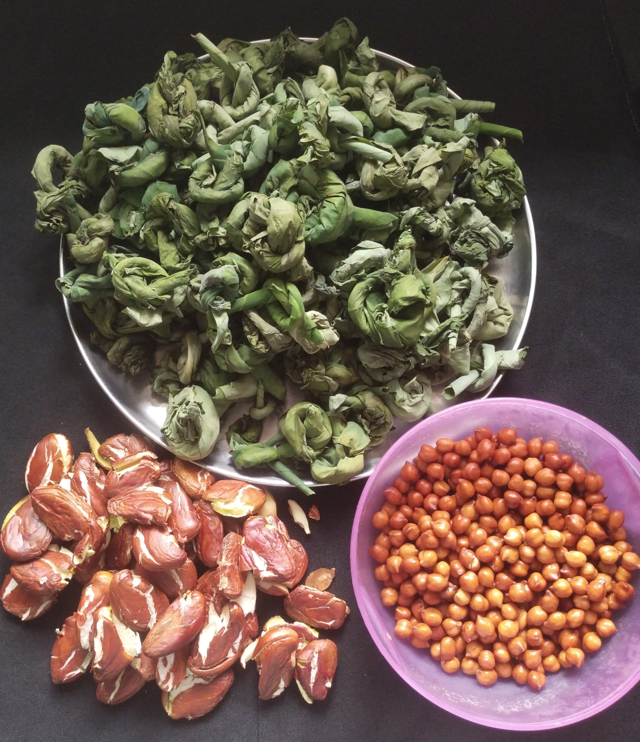 Crush jack fruit seeds and remove skin and keep aside… & 1 cup Black chana.. Cook all this with 2 cup of water 💧 In pressure cooker for 3-4 whistles.