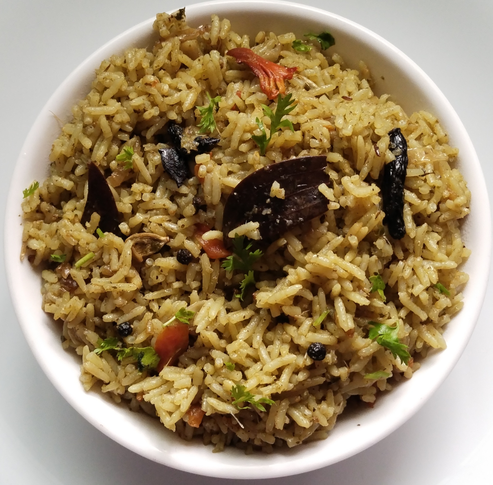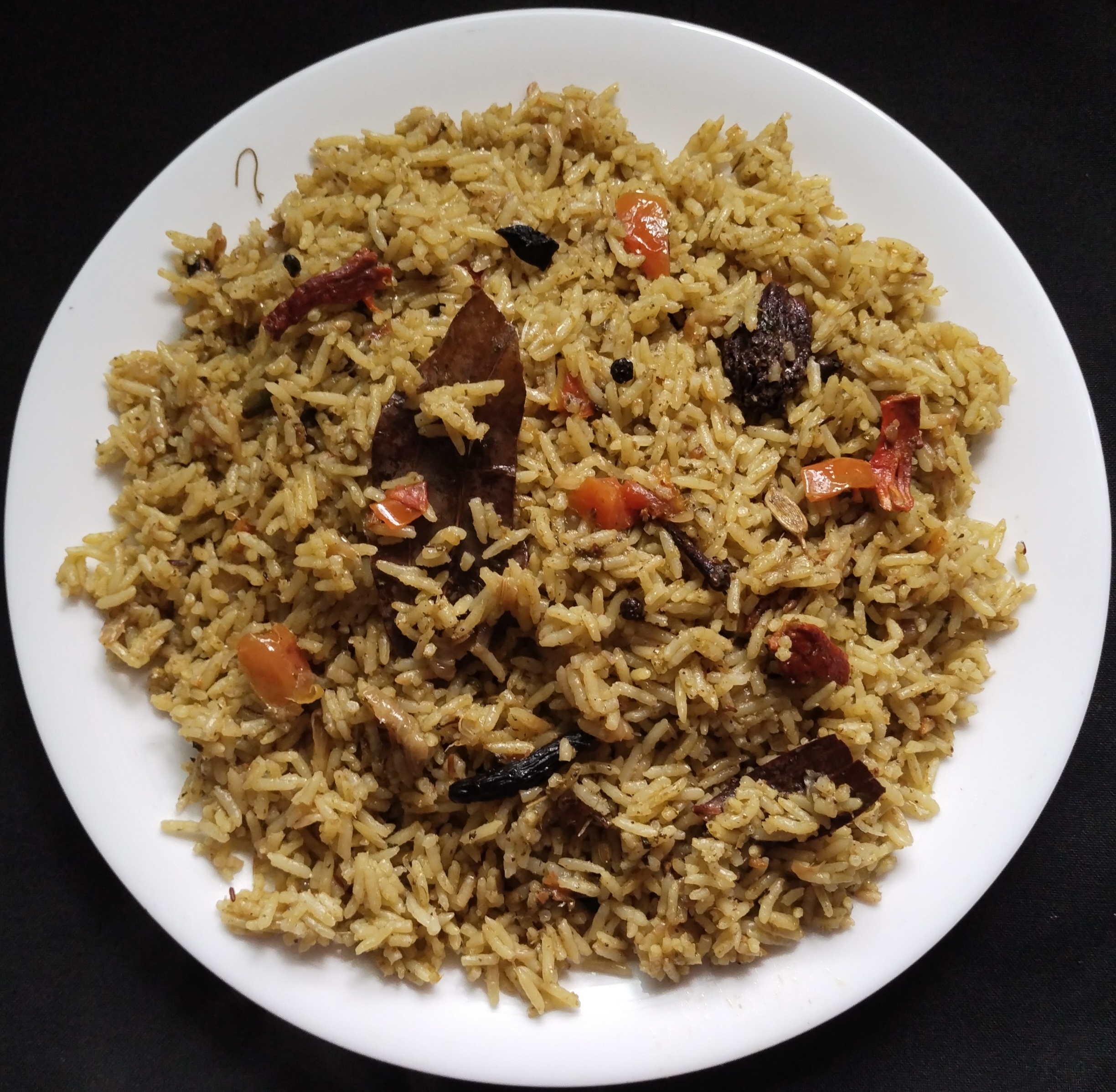 ๐It is nothing but a one pot vegetarians plain biryani rice made without any meat or veggies. Also know as Kuska rice. It is simply flavor packed & can be eaten without any sides . But in restaurants it is usually served with a gravy known as ๐salan. A lot of people also eat this with kurma or even Raita .This style Kuska Rice or plain biryani cooked in onion tomato ๐ base ๐ flavored with spice masala powders, mint and coriander leaves. Totally different in taste.