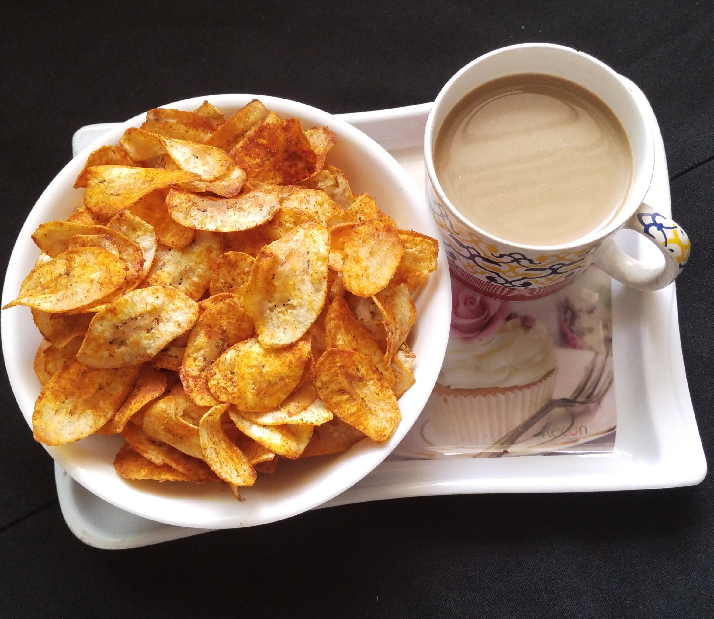 Ready to serve With Cup of Hot Hot ☕ Coffee Tasty and crispy Banana Chips you can seasoned with chat masala powder & pepper power too.