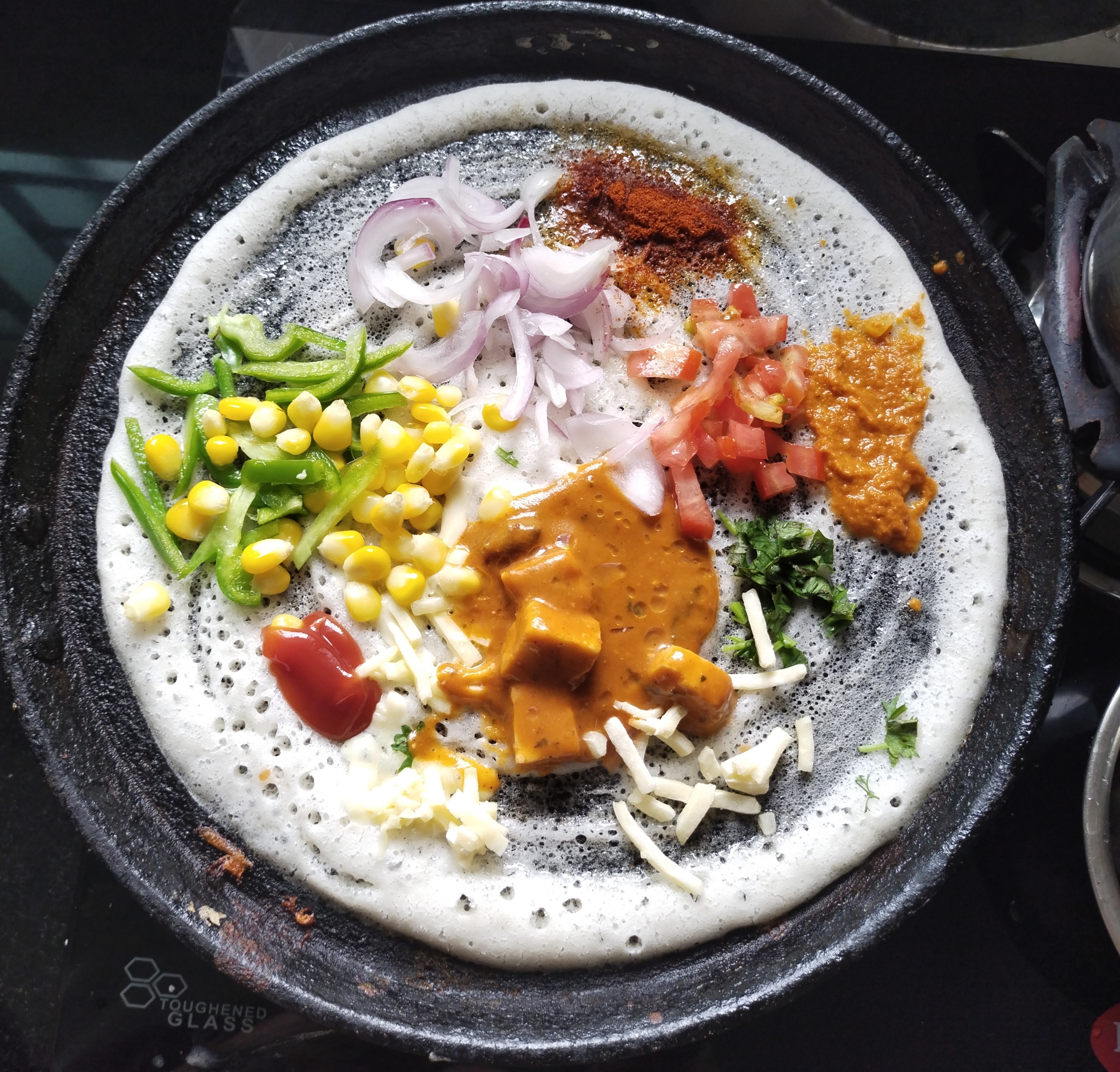 Mumbai Street Style Dosa In My Own Style / Spicy Cheesy Dosa Loaded With Diced Mozzarella Cheese