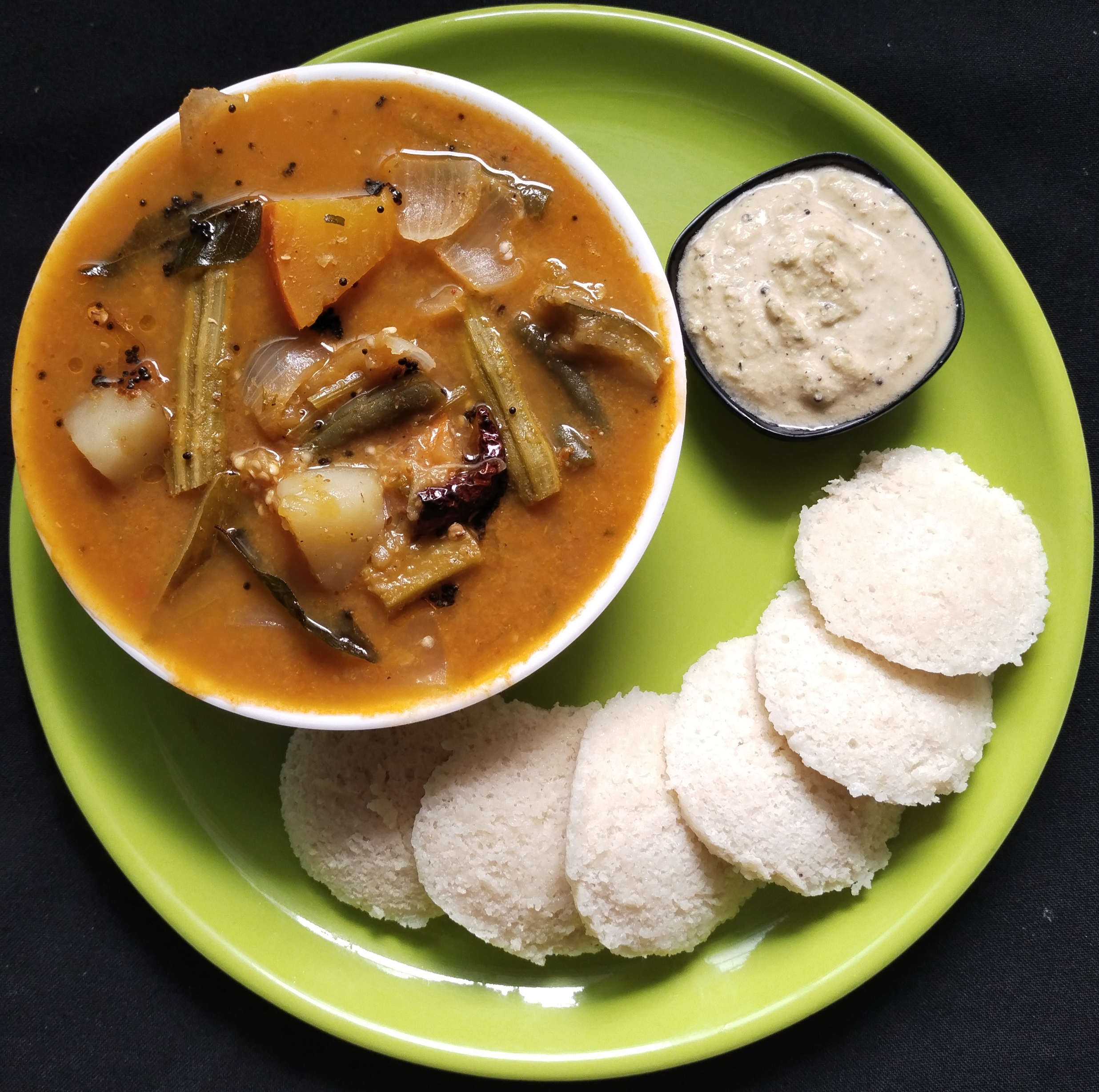 Idli With Hot Hot Sambar & Coconut Hotel Style Chutney