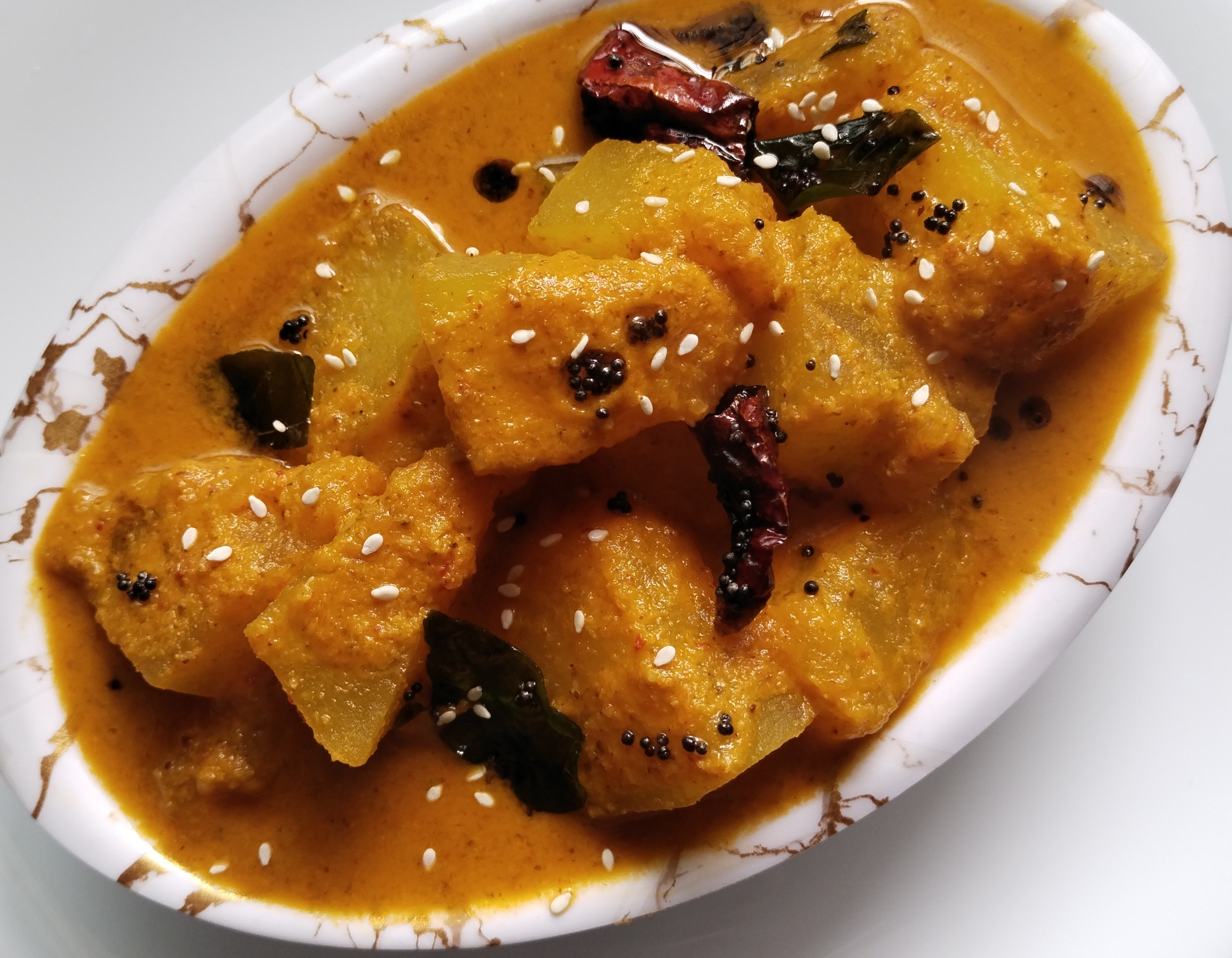 Ash Gourds In Spicy, Sweet Coconut Gravy / Kuvale Puli Koddel