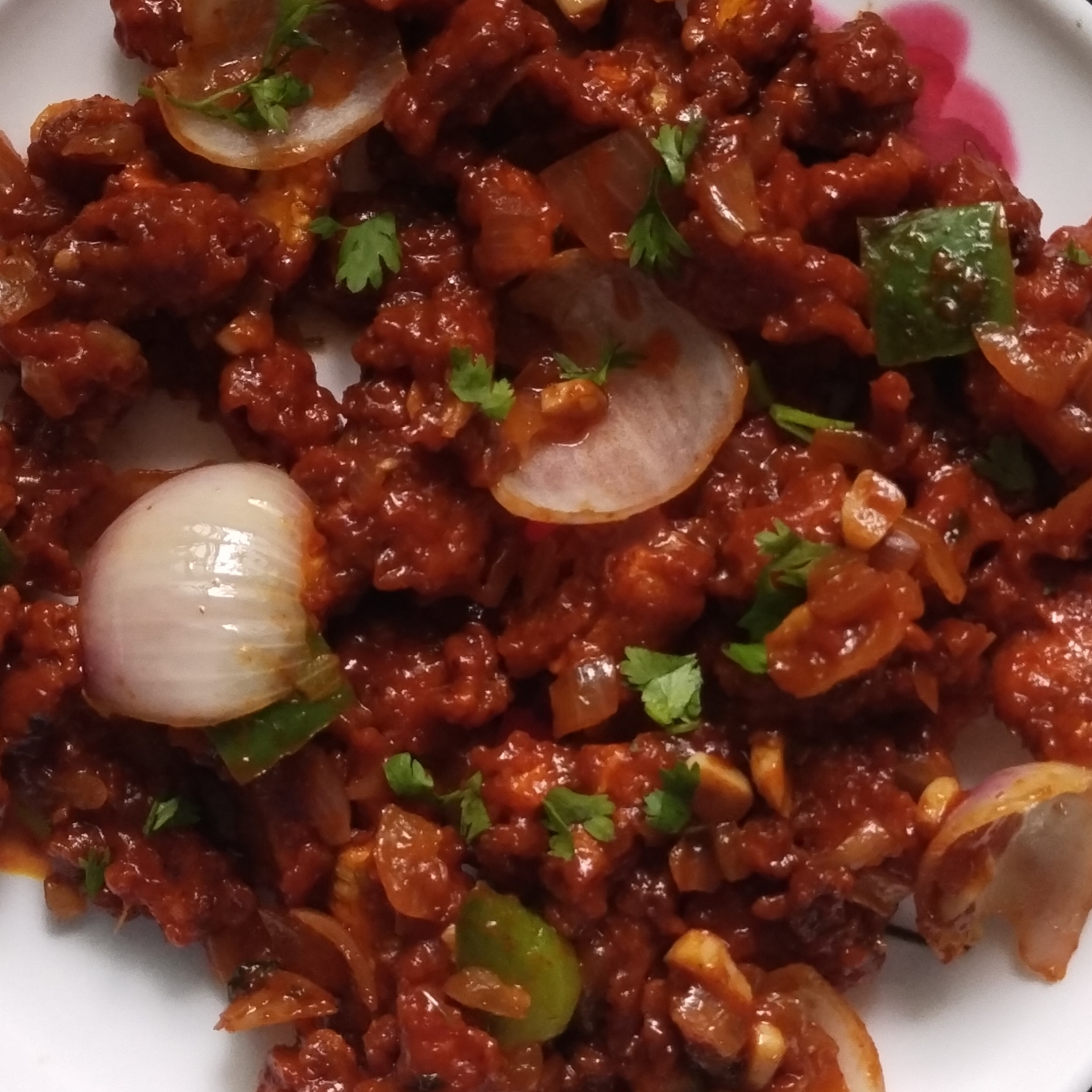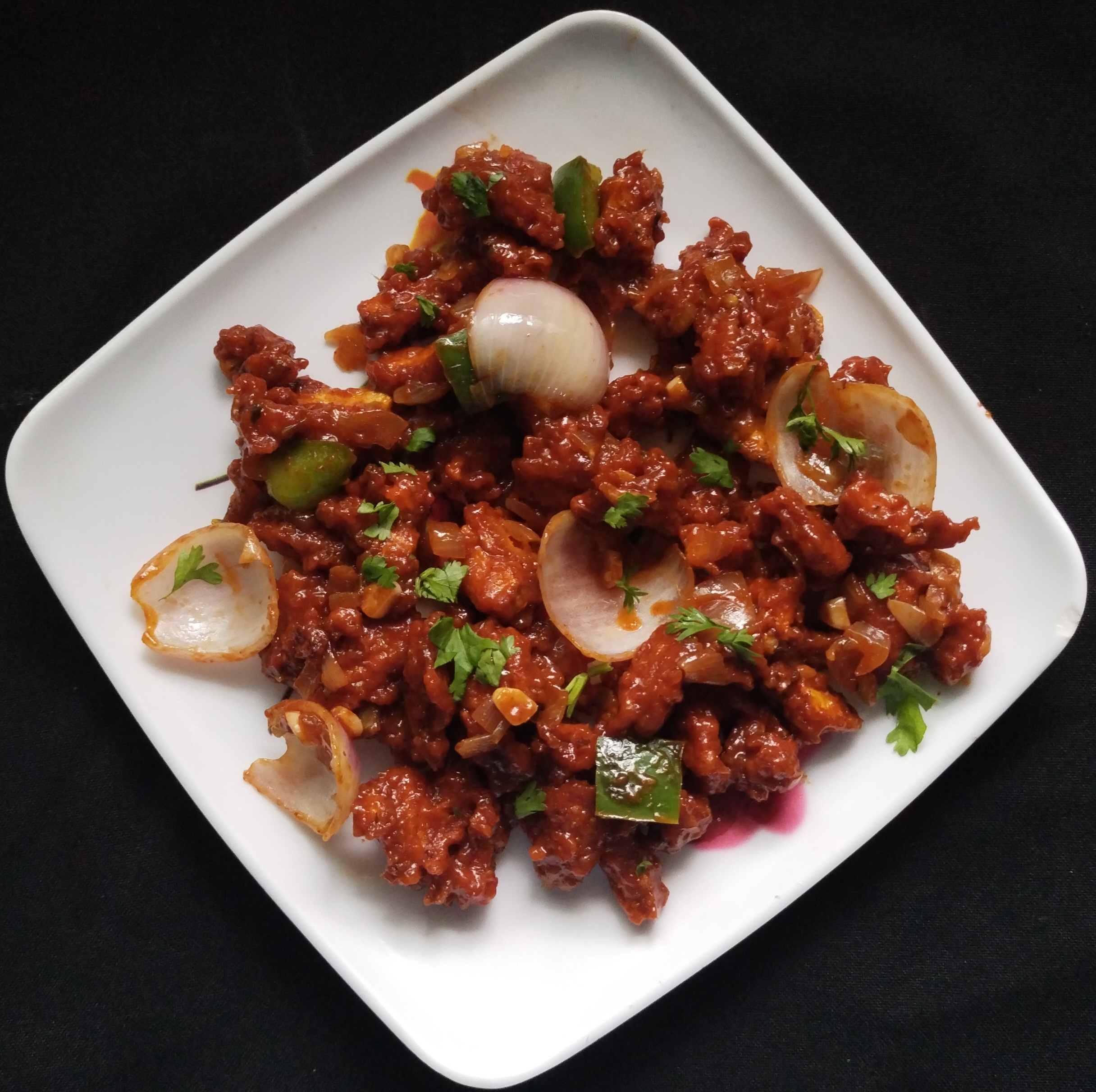 Now in a large kadai, heat 3 tsp oil and saute 2 clove ginger garlic finely chopped & green chillies chopped further add 2 onions & Capsicum saute well.additionally add 1 tbsp chilli sauce, 1 tbsp vinegar, 1 tbsp soy sauce, 2 tbsp tomato sauce and salt to taste. keeping the flame high.add 2 tbsp cornflour mix with water add the saucepan mix all the ingredients well.Add in 🍟 fried baby corn 🌽 and mix well.