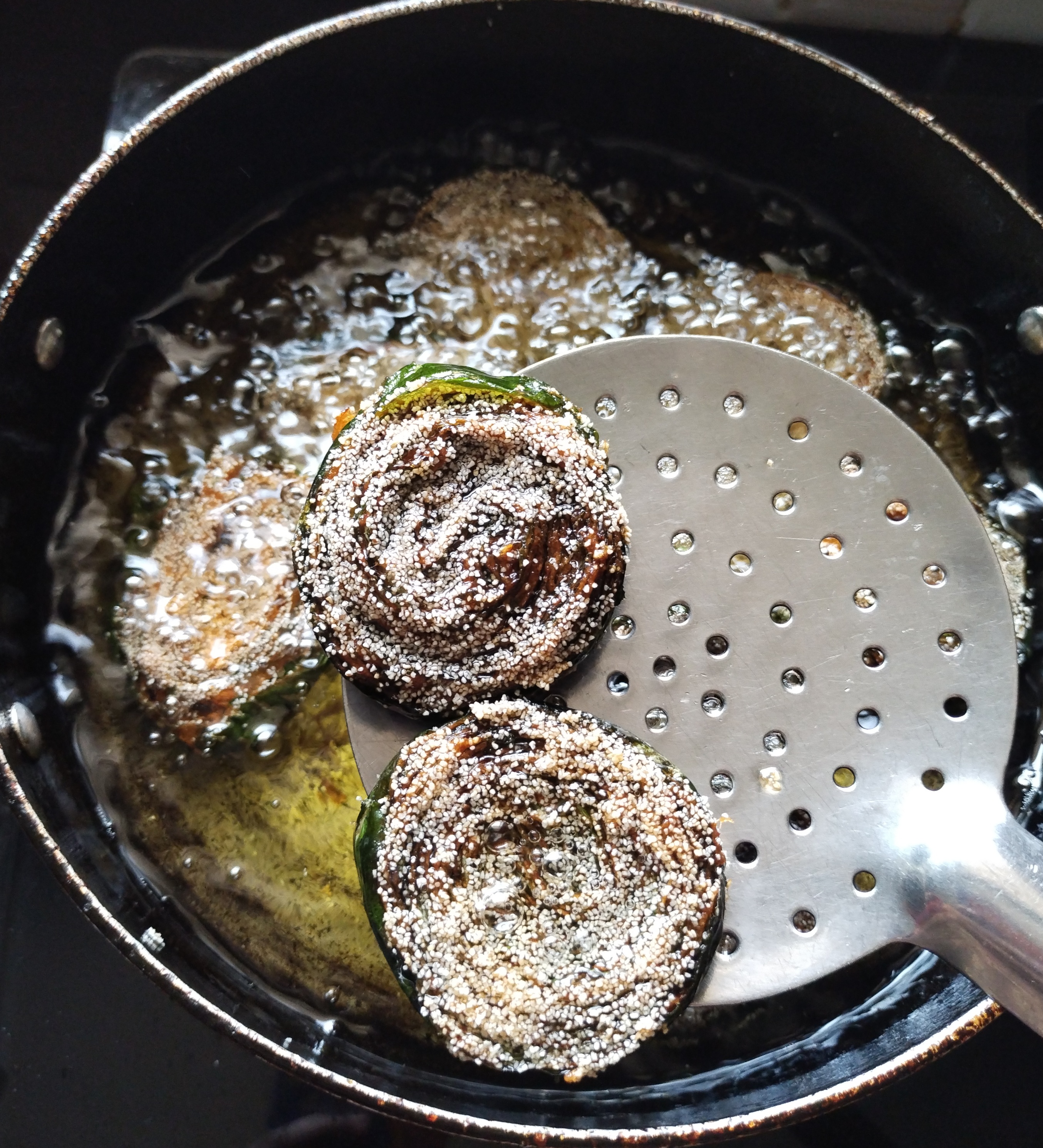 Dust each roundels in Bombay rava on both the sides keep aside.