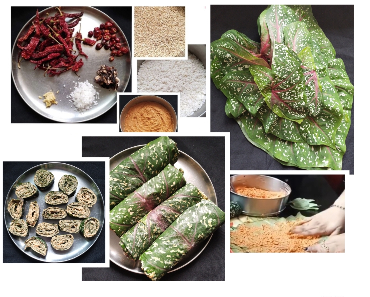 Wash & clean them thoroughly, wipe it well..On a clean kitchen platform or on a table place a big leaf with the back surface facing 💁Apply the masala all over the leaf with your ✋hand.